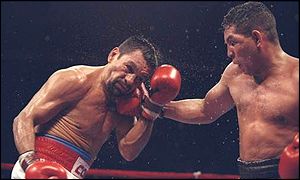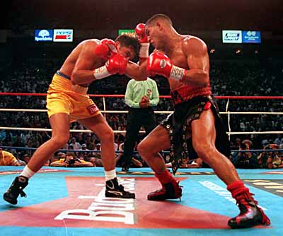 Among Camacho's notable bouts since 1992 were two victories (by points) over Roberto Durán, (one in Atlantic City, the other in Denver. In 1997, he knocked out Sugar Ray Leonard in 5 rounds. This loss sent Leonard into permanent retirement, putting an end to his comeback attempt after a loss to Terry Norris in 1991. Camacho fought for the World Welterweight Championship against Félix Trinidad (in 1994) and Oscar De La Hoya (in 1997), losing both matches by unanimous decision.