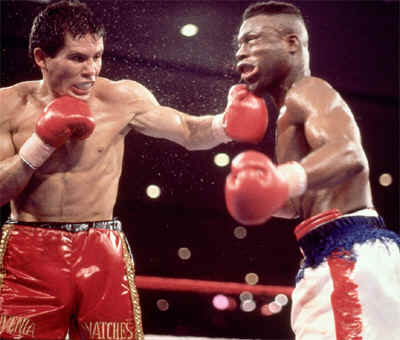 Julio César Chávez is an example of a "swarmer" (his punches caused severe damage to Meldrick Taylor´s body after their match in 1990)On March 17, 1990, he faced Meldrick Taylor (see Chavez versus Taylor), the undefeated IBF Junior Welterweight champion, in a title unification fight. While Taylor won the early rounds, Chávez rallied in the later rounds, scoring a knockdown with 2 seconds remaining in the final round. Although Taylor rose at the referee's count of six, he did not respond coherently to referee Richard Steele's questions, continued to hold the ropes all along, and Steele stopped the fight with only two seconds remaining. Many boxing fans and members of the media were outraged that Steele would stop a match that Taylor was winning with only two seconds left, while others felt that Steele was justified in stopping the fight given Taylor's condition and the fact that he was unable to respond to Steele before the conclusion of the match. Steele defended his decision by saying that his concern is protecting a fighter, regardless of how much time is left in the round or the fight. As Steele put it, "I stopped it because Meldrick had took a lot of good shots, a lot of hard shots, and it was time for it to stop. You know, I'm not the timekeeper, and I don't care about the time. When I see a man that has had enough, I'm stopping the fight."The Ring named it the "Fight of the Year" for 1990, and later the "Fight of the Decade" for the 1990s. While many hoped for an immediate rematch, Taylor moved up in weight in his next bout and the fighters did not meet again until 1994 when Chávez dominated and then knocked out a faded Taylor in eight rounds.