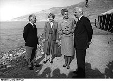 In 1977, Halaby, who attended various high-profile social events as the Director of Facilities Planning and Design, met King Hussein of Jordan for the first time on the development of the Queen Alia International Airport. The airport was named after Queen Alia, King Hussein's third wife, who died in a helicopter crash the same year. Halaby became a friend of the King, who was still mourning after the death of his wife. Their friendship evolved into romance and the couple became engaged in 1978.