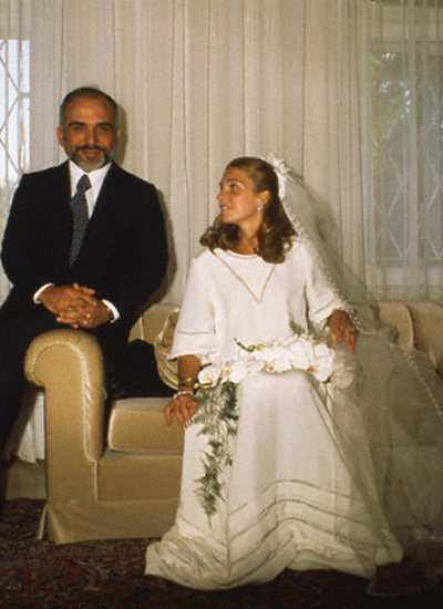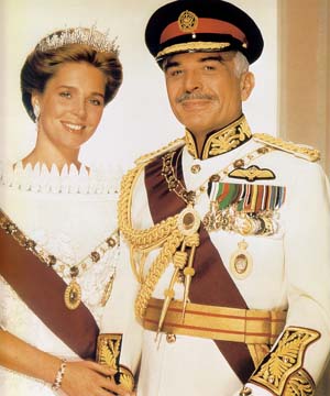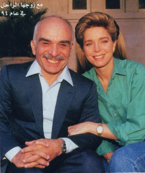 Queen Noor of Jordan (born 23 August 1951) is the last wife and widow of King Hussein of Jordan. She was queen consort of Jordan during her marriage (1978–1999) and has been queen dowager of Jordan since her husband's death in 1999.