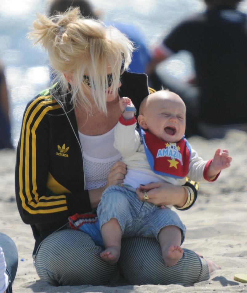 Gwen Stefani and husband Gavin Rossdale get in some quality family time with their two sons — Kingston, 3, next month, and Zuma, 7 1/2 months — at Long Beach outside of Los Angeles on Sunday.