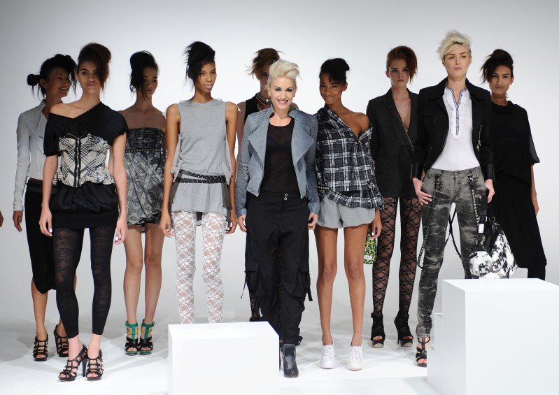 "But oh what fun the clothes were – slinky overdyed jeans with slung down suspenders paired with a tough stretch biker blazer, coquettish blouses that casually fell off the shoulder," writes Newsday fashion blogger Anne Bratskeir, adding, "Definitely the way to channel your inner rock star. Speaking of which, when the smiley and svelte Stefani took her bow, well, natch, she fit right in with her models."