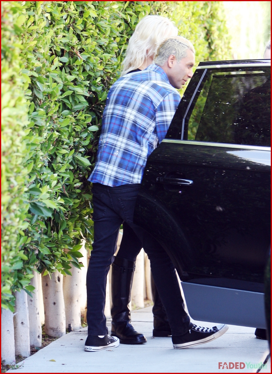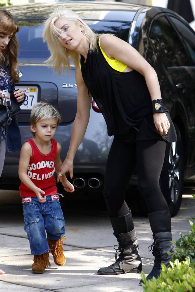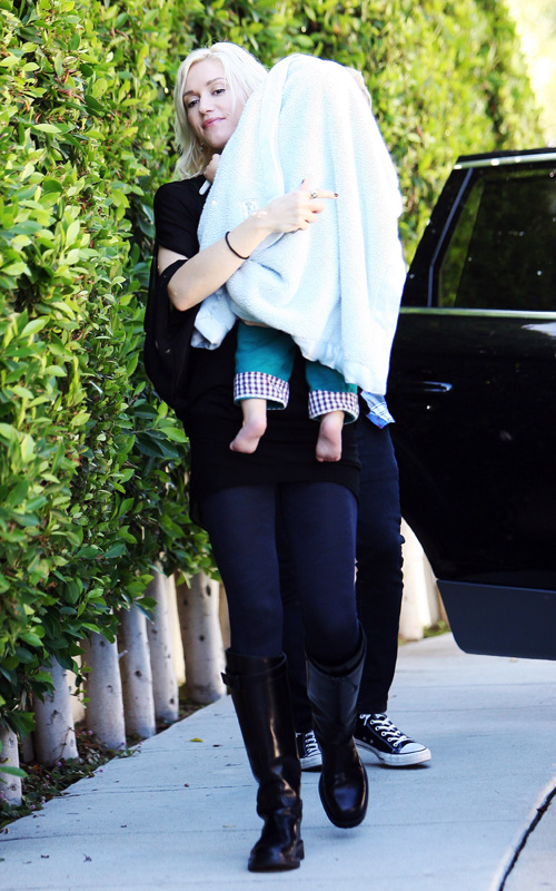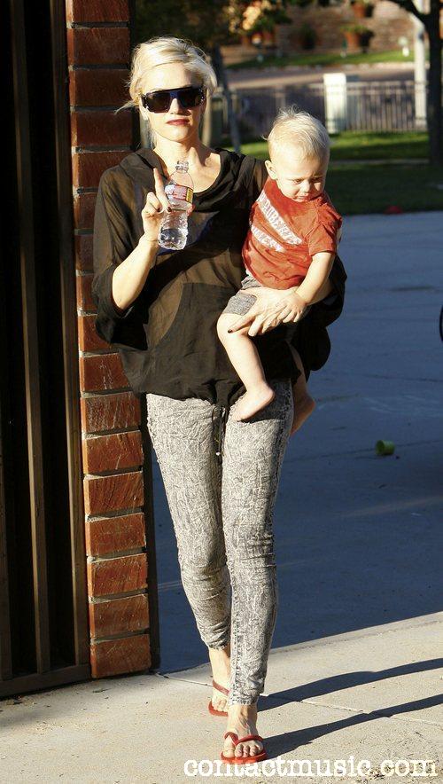 Toting her young son in her arms, Gwen Stefani visited her bandmate, Tony Kanal, in Los Angeles on Monday afternoon.