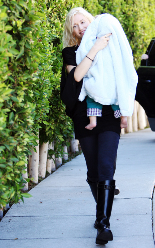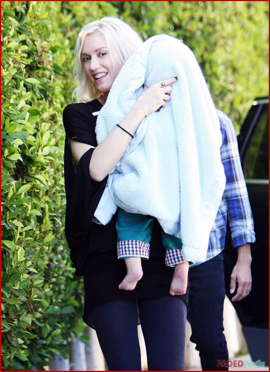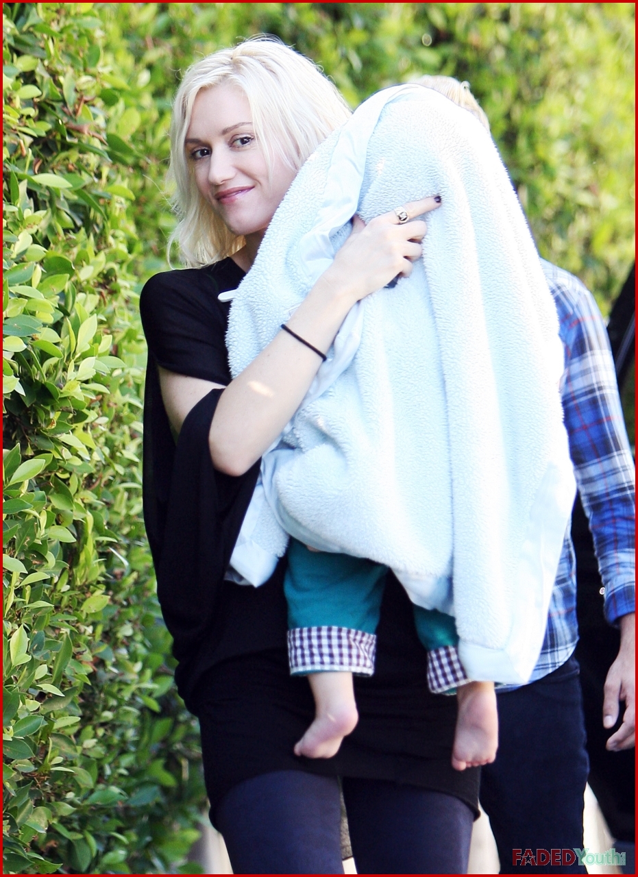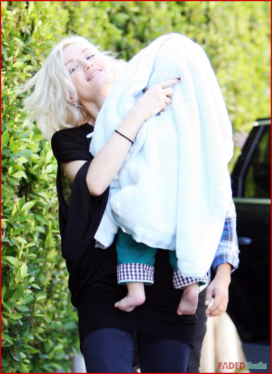Gwen Stefani visited her bandmate and former boyfriend Tony Kanal in Los Angeles on Monday where the two carefully got baby Zuma Rossdale out of the car wrapped in a blanket.