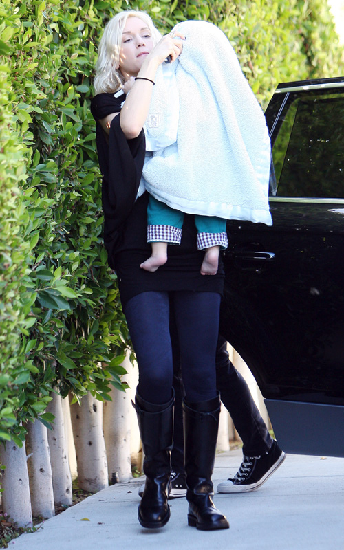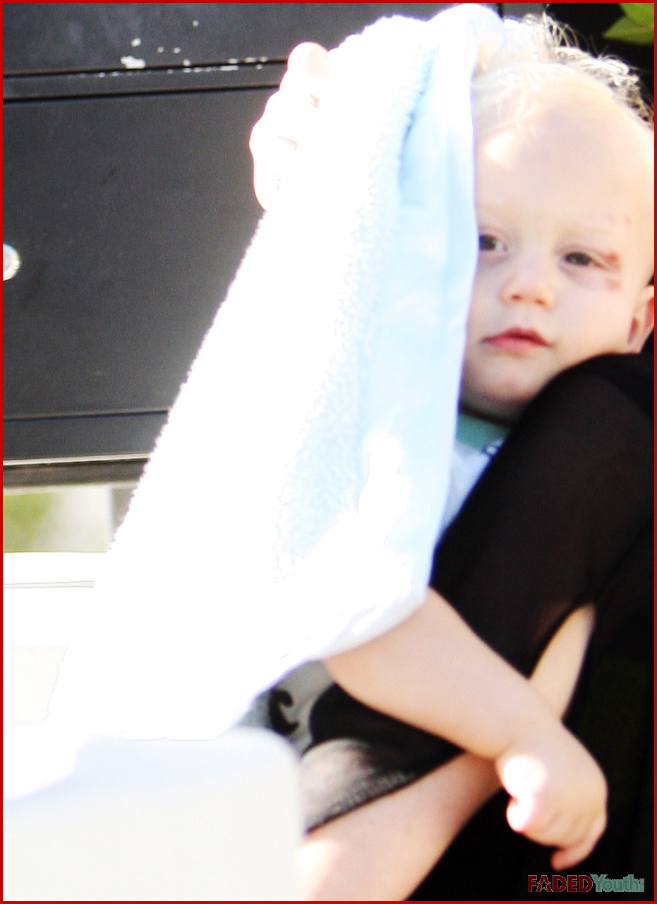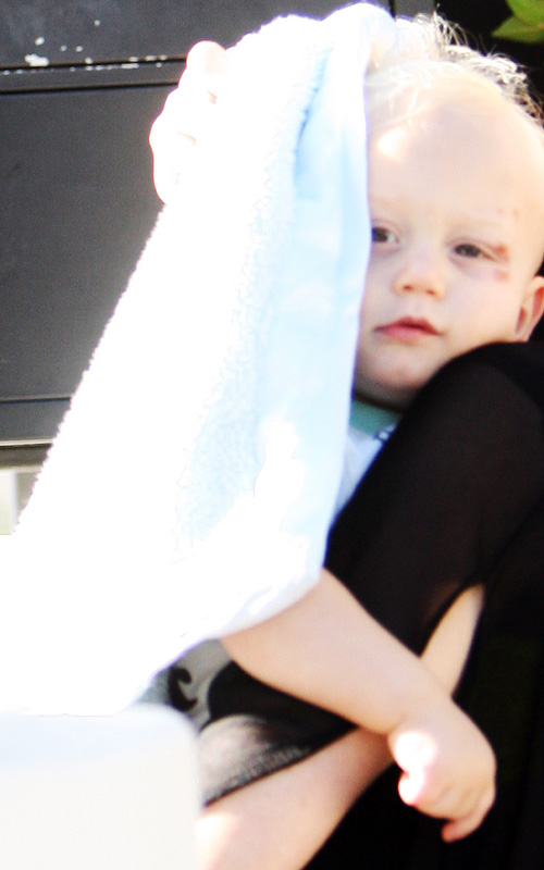 The No Doubt frontwoman carefully got baby Zuma out of the car wrapped in a blanket, as he seemed to be sporting some type of eye injury with bruising.