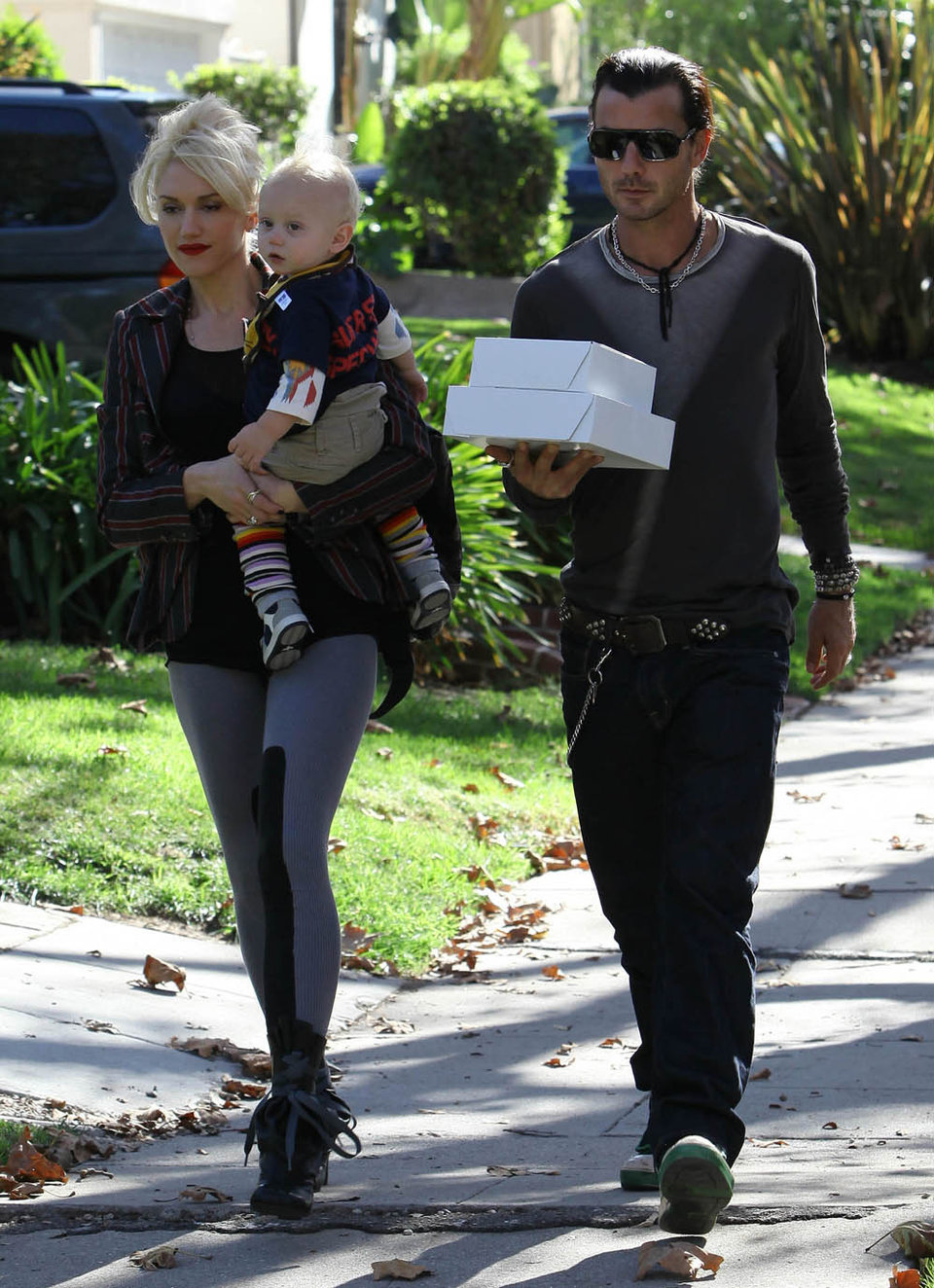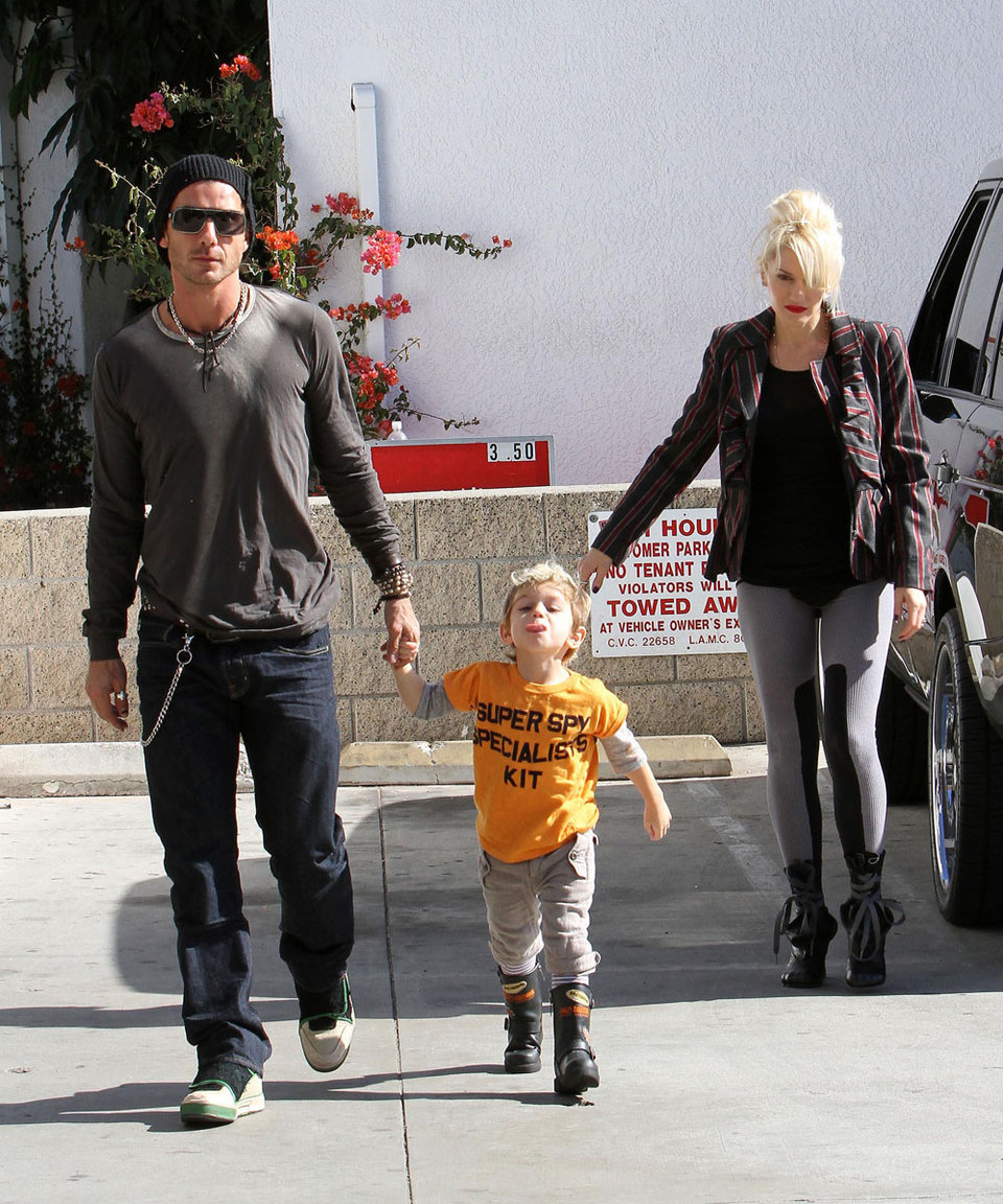 Gwen Stefani, Gavin Rossdale and their two sons - Kingston, 3 1/2, and Zuma, 14 1/2 months - were spotted heading to a house party after picking up a cake and cookies at a local bakery in Los Angeles on Sunday. The always animated Kingston stuck out his tongue at the prying paps!