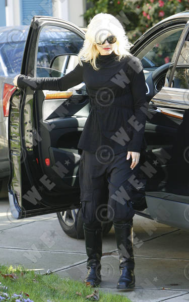 Gwen Stefani dressed all in black, arrives at her parents house.