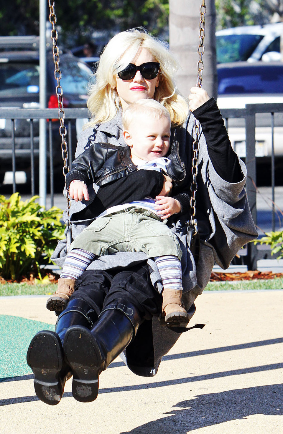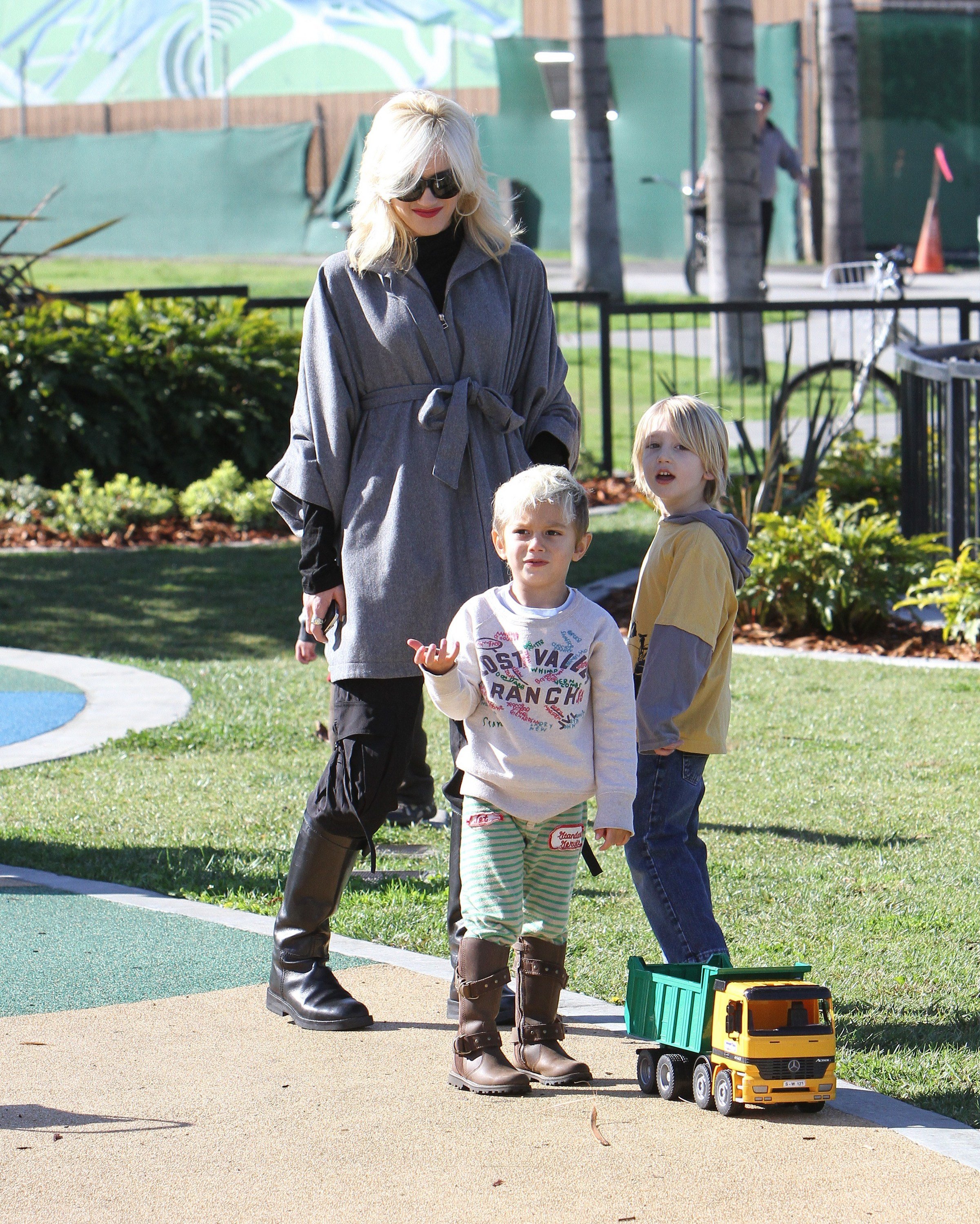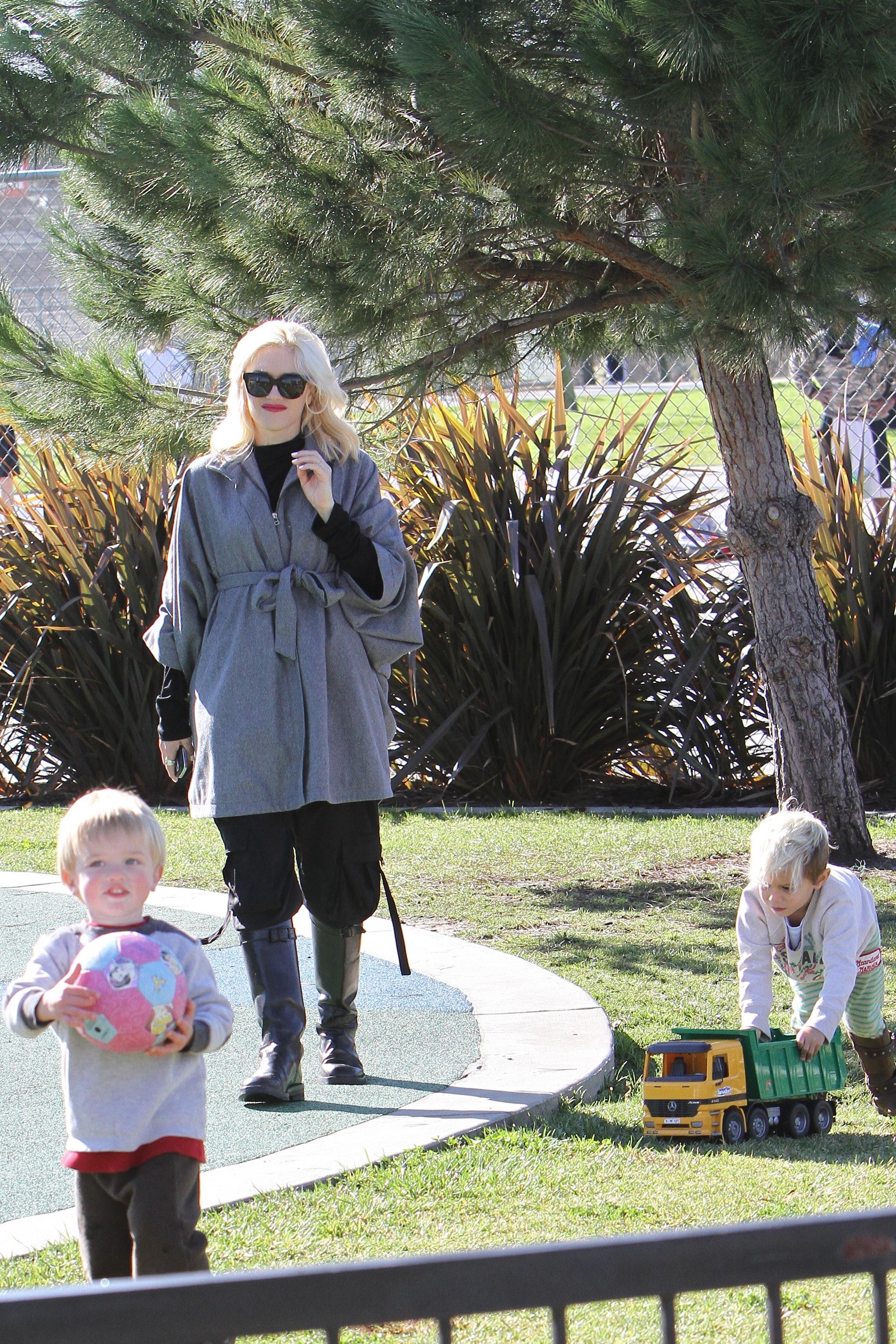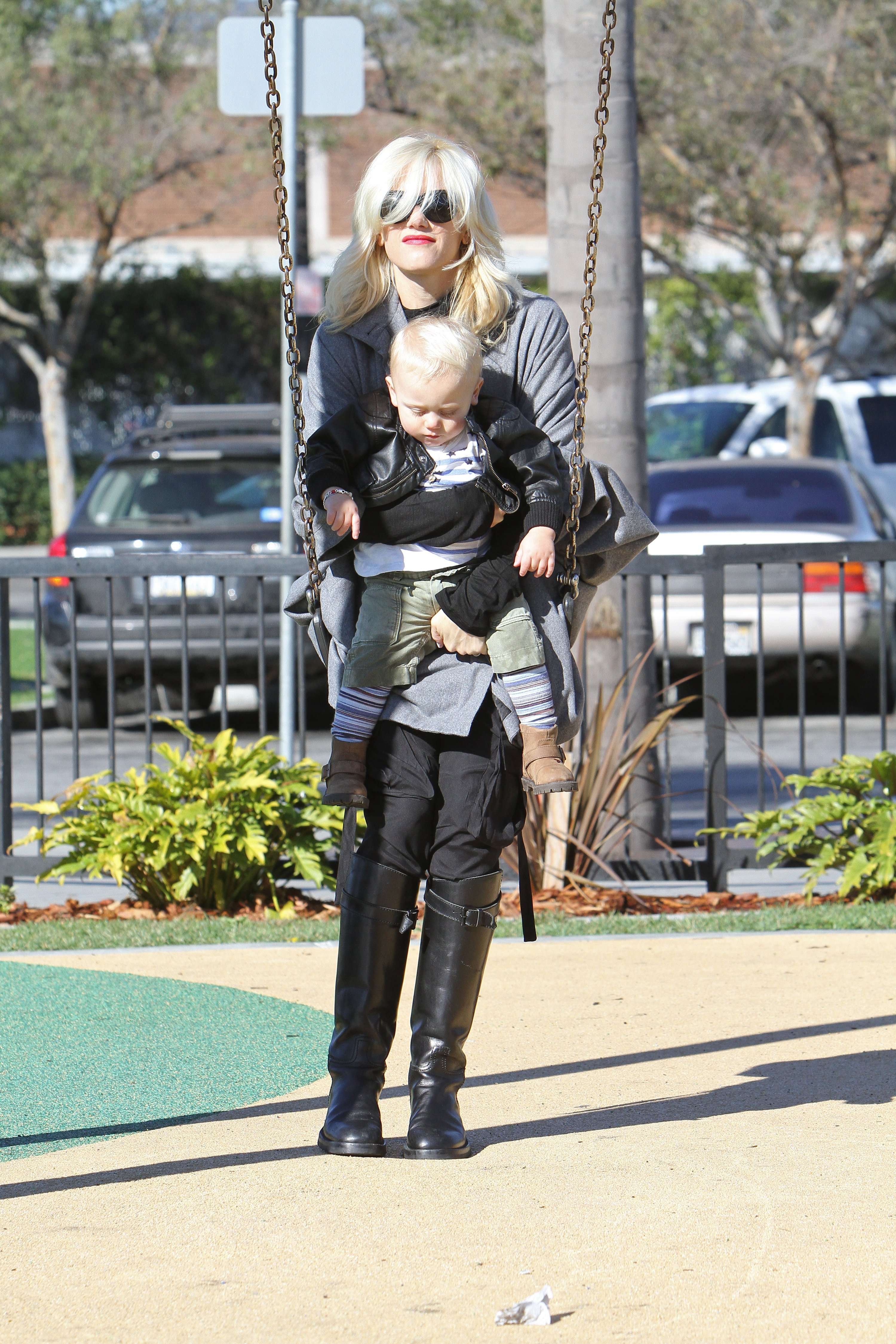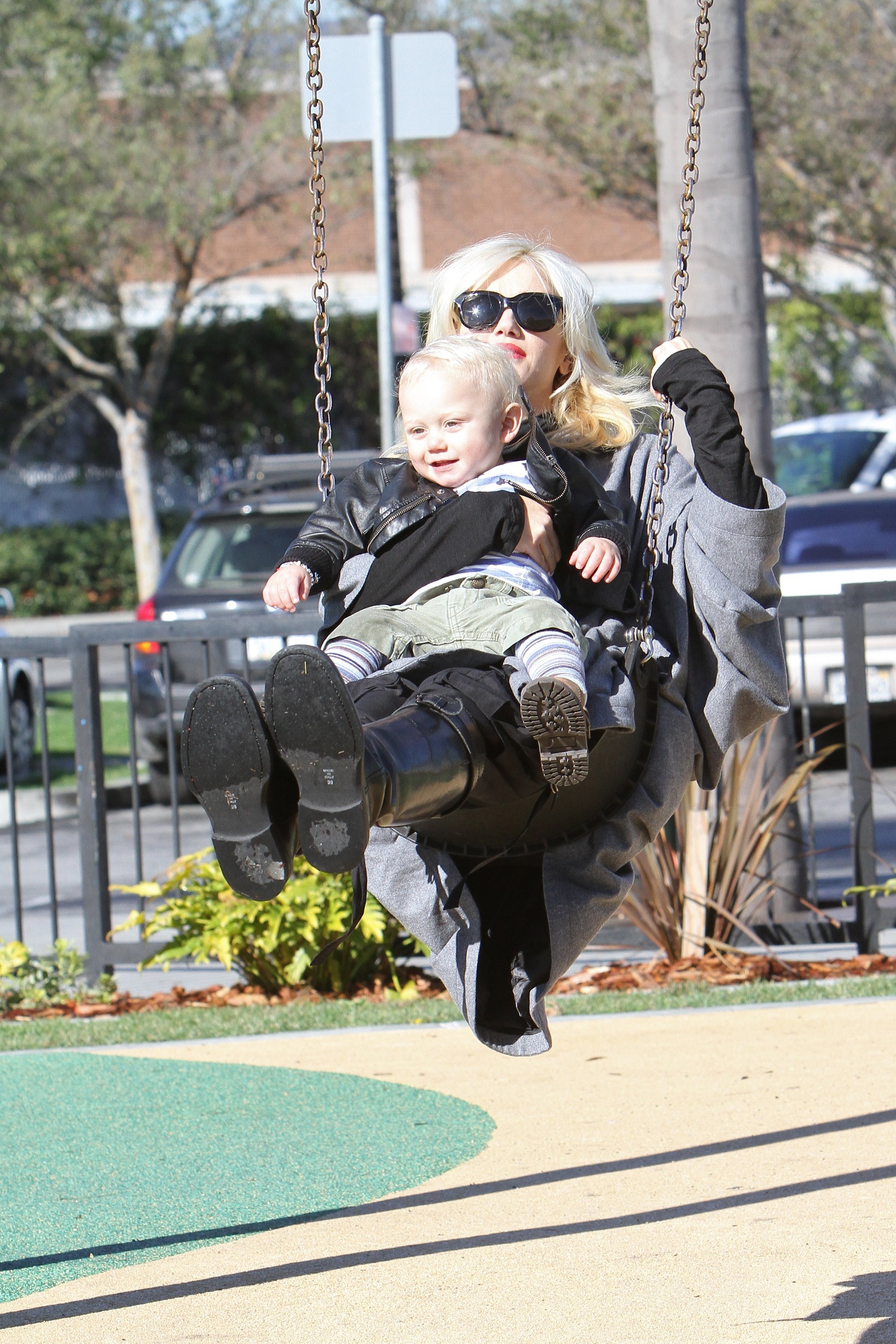 Gwen Stefani took her two gorgeous sons - almost 3.8-year-old Kingston and 17-month-old Zuma - to a park in Beverly Hills on Saturday. The 40-year-old No Doubt singer enjoyed a swing with Zuma while Kingston enjoyed the park. And how cute was Zuma as he walked around holding his little doll!?