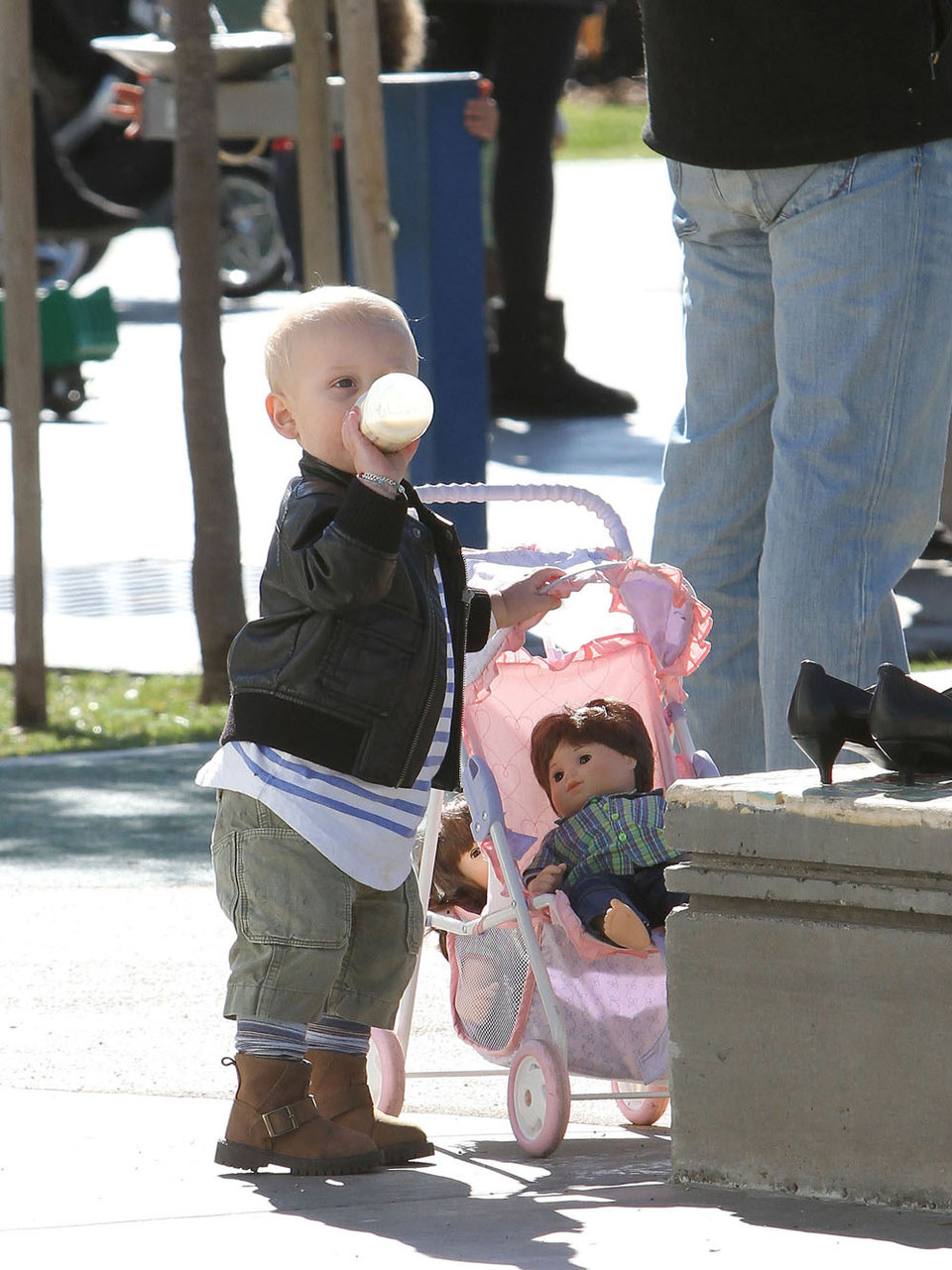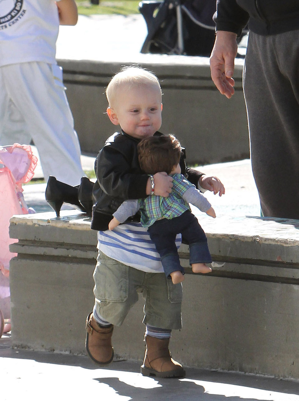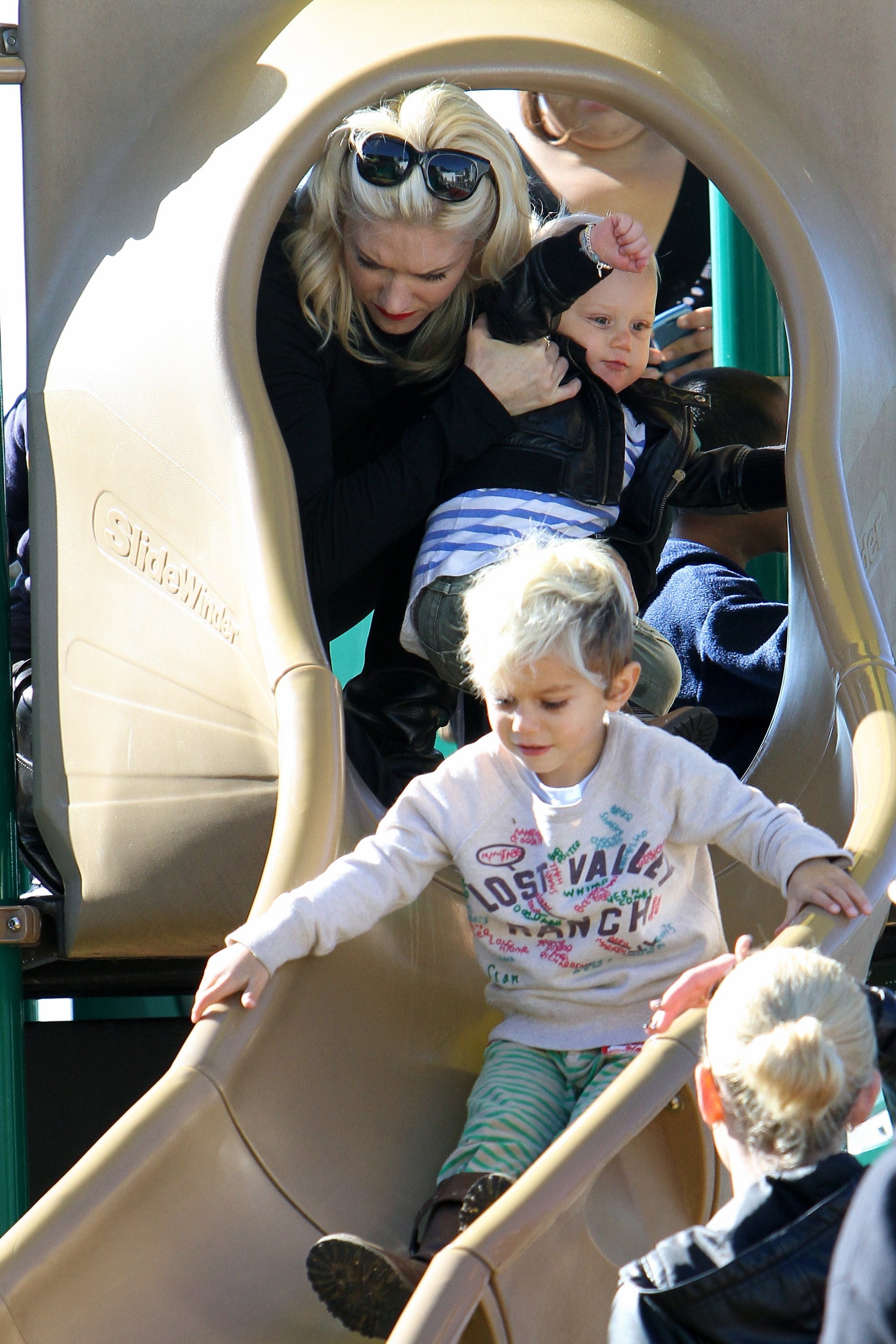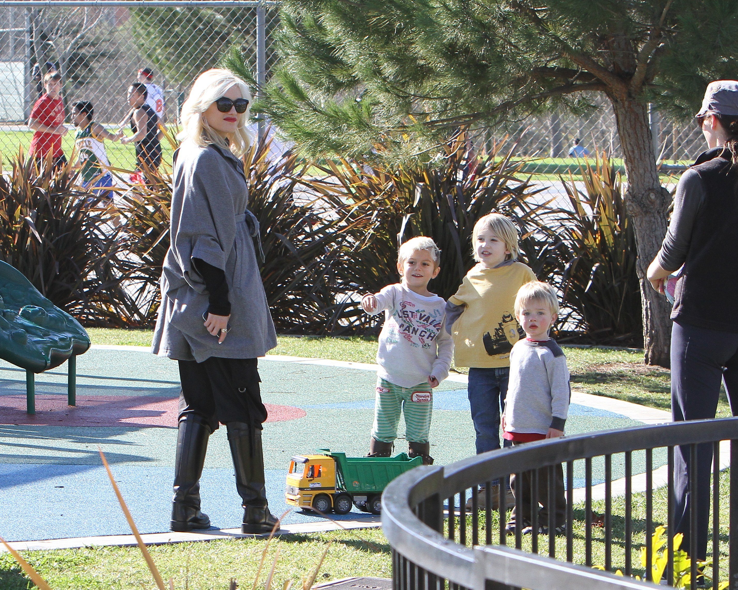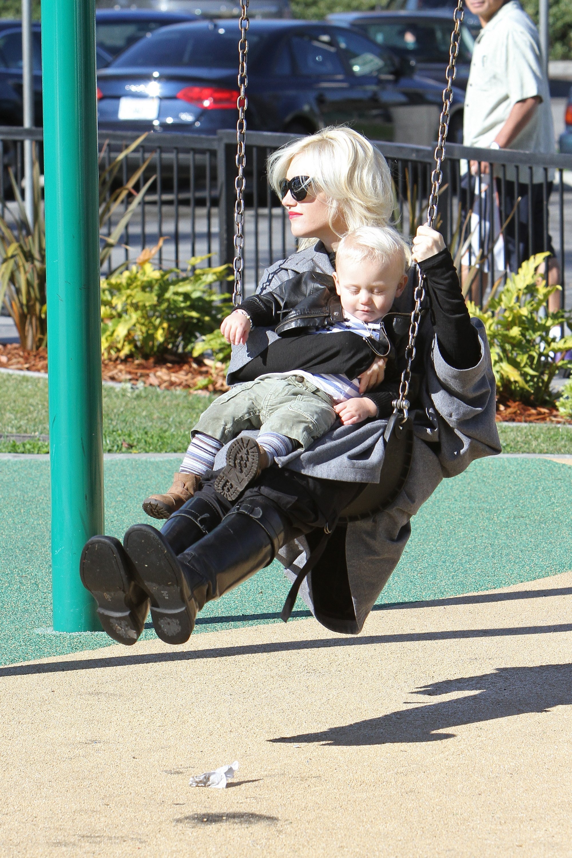 Gwen Stefani took her two gorgeous sons - almost 3.8-year-old Kingston and 17-month-old Zuma - to a park in Beverly Hills on Saturday. The 40-year-old No Doubt singer enjoyed a swing with Zuma while Kingston enjoyed the park. And how cute was Zuma as he walked around holding his little doll!?