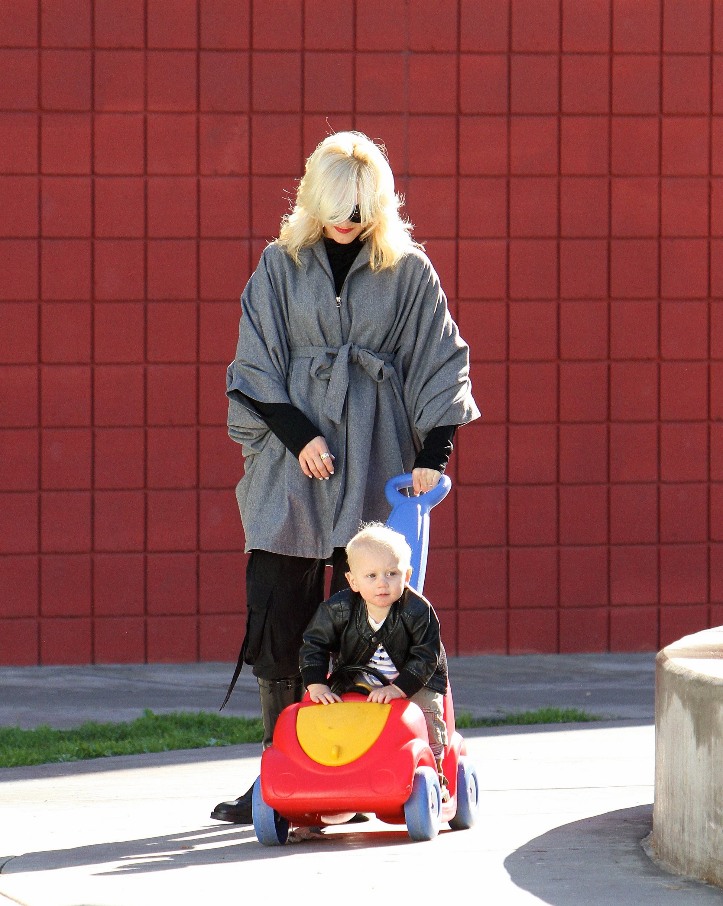 January 16, 2010: Christina Aguilera's son Max Liron Bratman born on January 12th, 2008 had a birthday party for her son and got actual firetrucks to drive the kids around the block. Gwen Stefani and Gavin Rossdale were there with their sons, Kingston and Zuma who were wearing matching jackets.