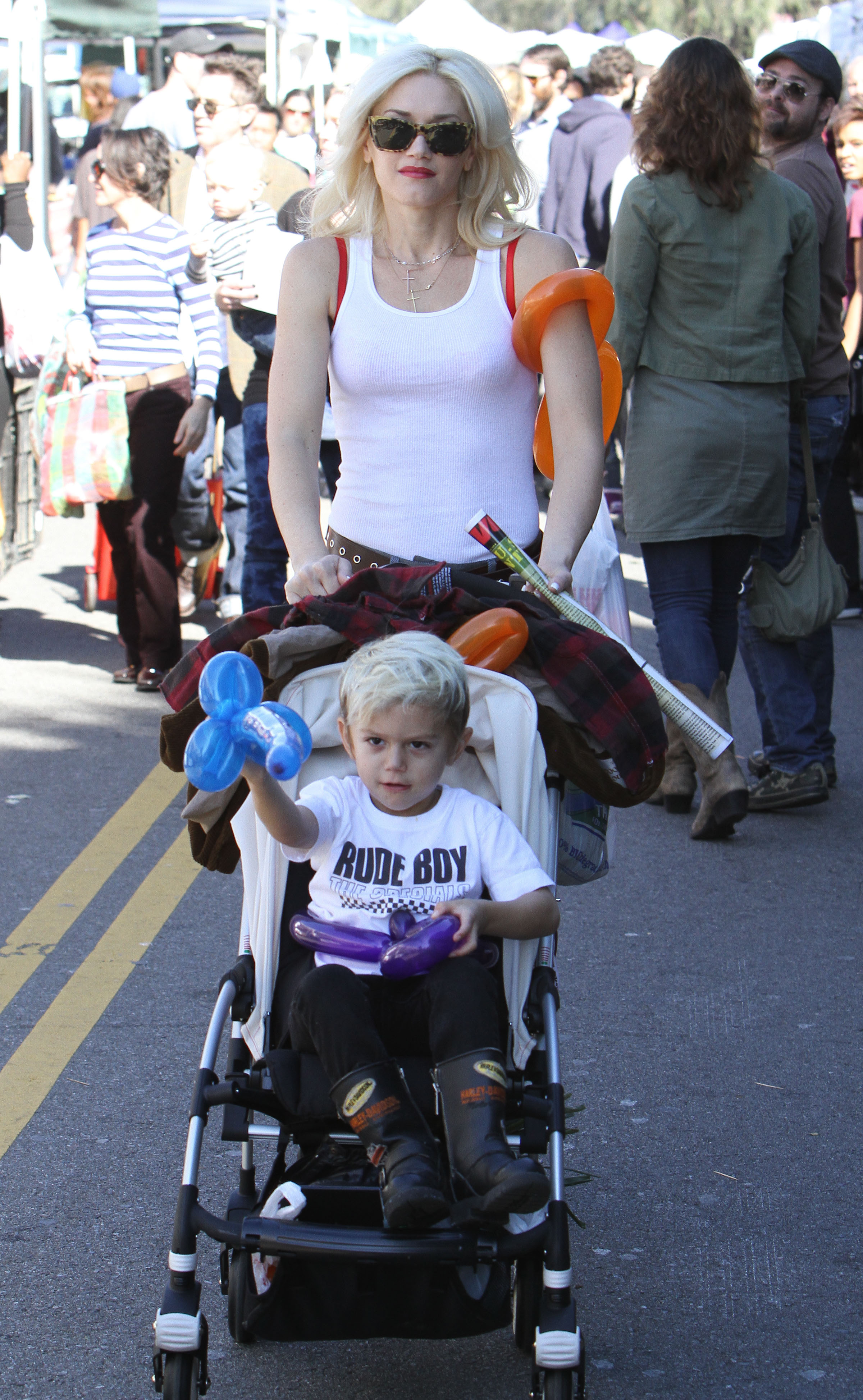 January 24th, 2010: Gwen Stefani and husband Gavin Rossdale were spotted out with the kids Sunday afternoon. Gwen, Gavin, Kingston, and Zuma were spotted at a Farmers Market, wondering around and having a good time.