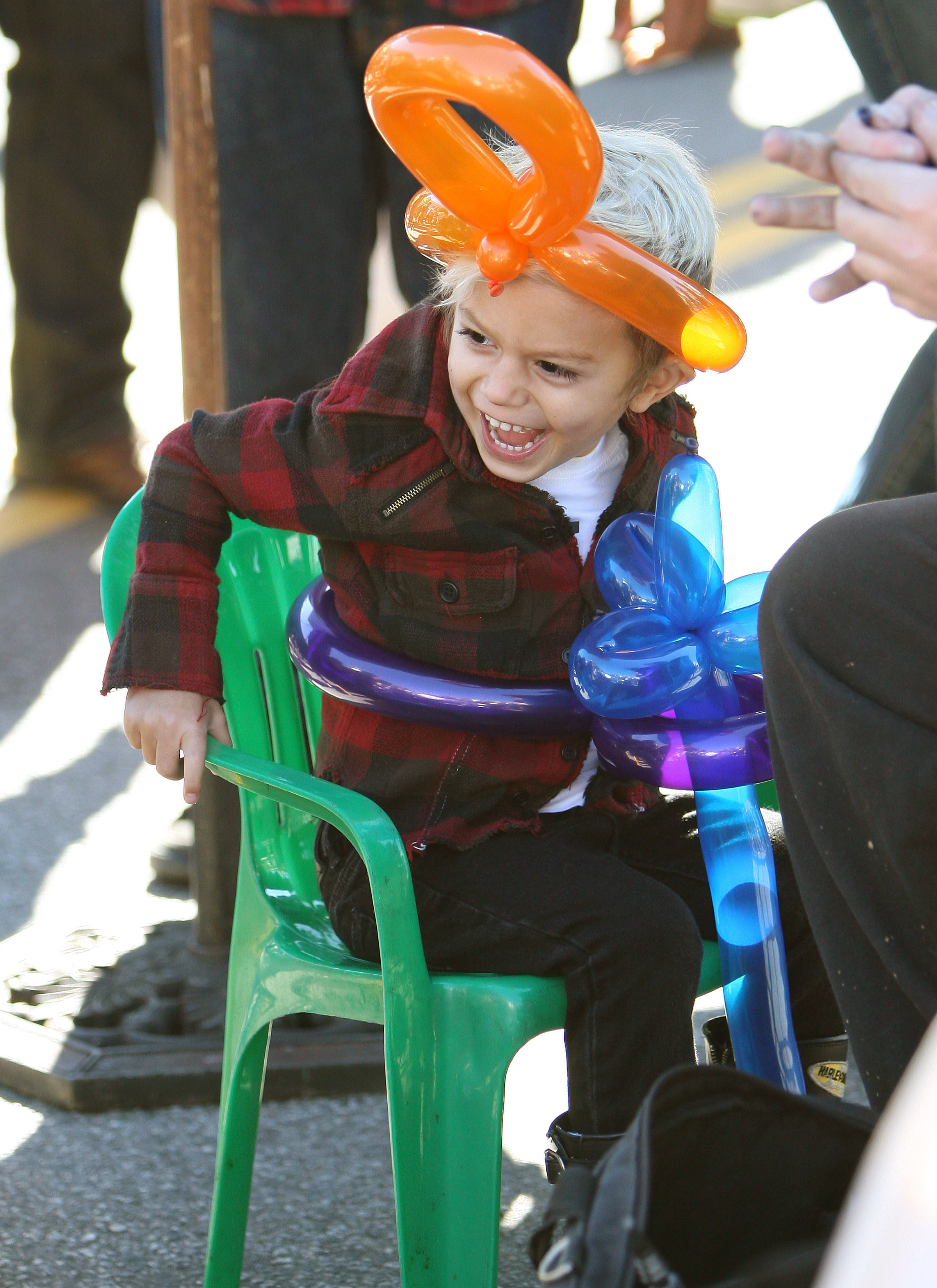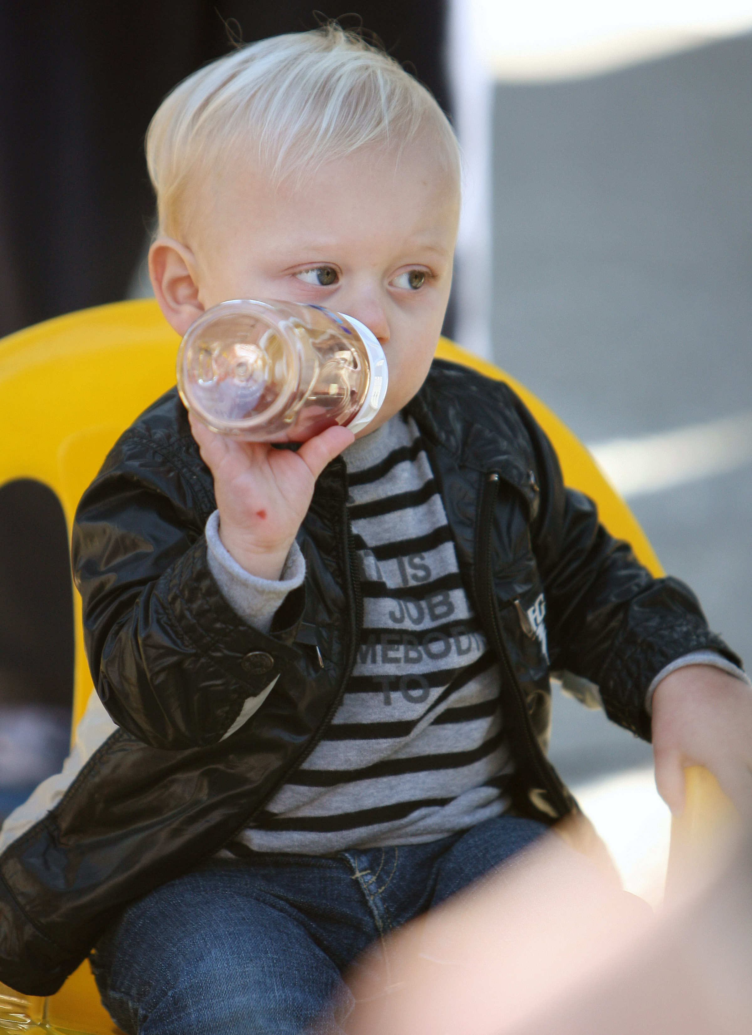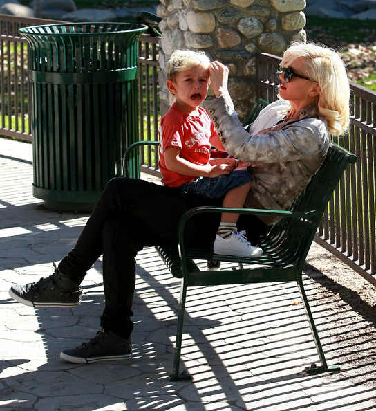 Why the long face, buddy? Three-year-old Kingston Rossdale takes time out from play time for a little one-on-one with mom Gwen Stefani at a Beverly Hills park on Thursday.