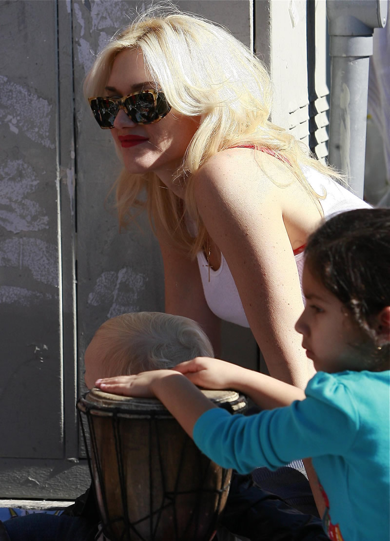The 40-year-old No Doubt singer also stopped by Nate ‘n Al’s with the kids for some lunch during the day.