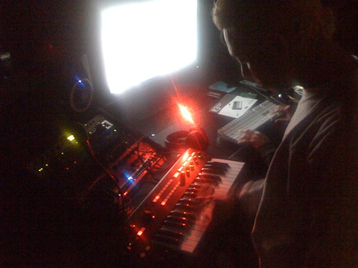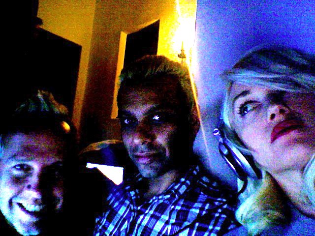 Tony and Gwen are rocking the synth. Our little studio is warm and candlelit, above the glowing city. Tom