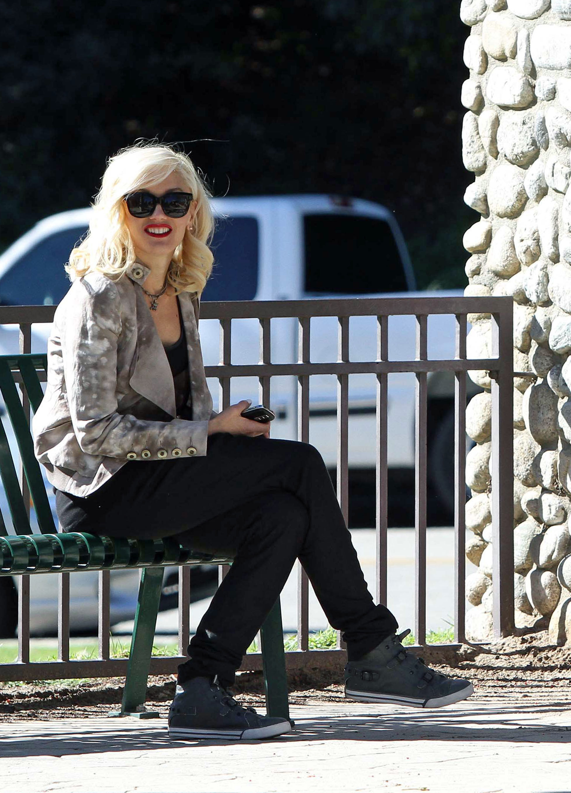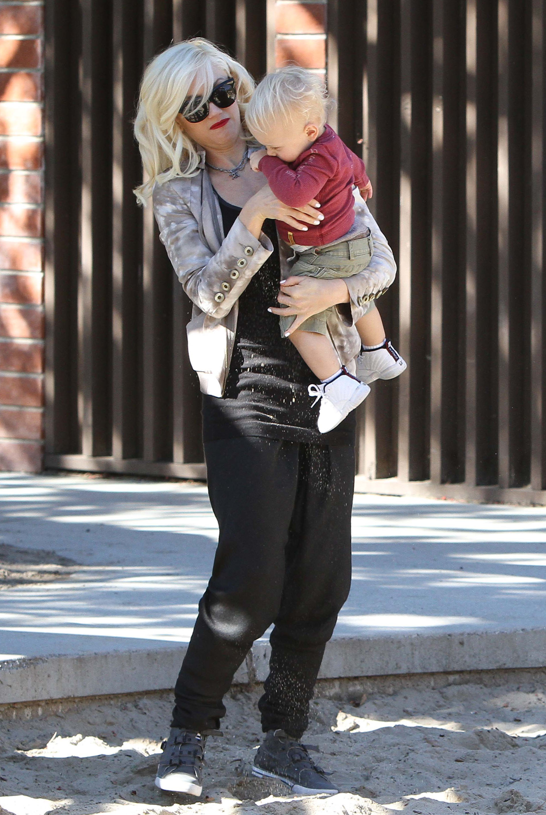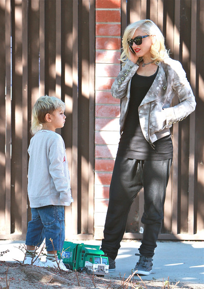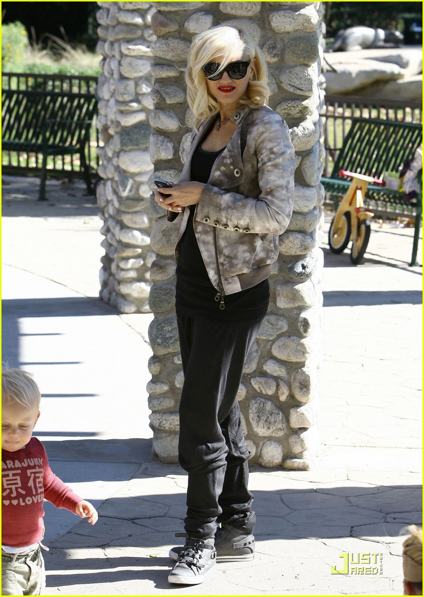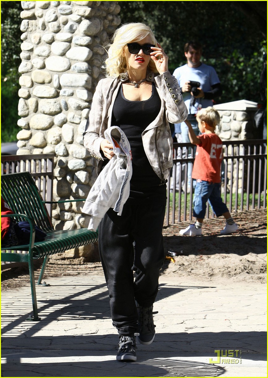 Singer Gwen Stefani takes her sons Kingston and Zuma to Coldwater Park in Beverly Hills before heading to Nate 'N Al's for lunch.