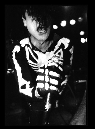 The Misfits' skull logo first appeared on the "Horror Business" single, based on a poster for The Crimson Ghost. It has been used frequently on the band's releases and merchandise ever since.Following the Static Age sessions the Misfits began a shift in songwriting and appearance, with Danzig writing more songs inspired by B horror and science fiction films. He painted skeletal patterns on his performance clothing, while Only began applying dark makeup around his eyes and styling his hair in a long point hanging from his forehead between his eyes and down to his chin, a style that became known as a "devilock" and which both Danzig and Only's brother Doyle would eventually adopt. This new style and musical direction would later be described as the subgenre "horror punk". The band performed more frequently and went on short tours in support of the "Bullet" single. While in Canada in October 1978 Franché Coma quit the band because he did not enjoy touring, and guitarist Rick Riley filled in temporarily to finish the tour. Jim Catania also quit following the tour, citing a distaste for the horror direction in which the band was heading. Within two months the pair were replaced by drummer Joey Poole, under the pseudonym Joey Image, and guitarist Bobby Steele. The new lineup of Danzig, Only, Image, and Steele began performing in December 1978 and continued to evolve the horror elements of the band. They released the "Horror Business" single in June 1979, the cover of which featured a skeletal figure inspired by a poster for the 1946 film serial The Crimson Ghost. The figure became a mascot for the band, and its skull image would serve as the Misfits' logo for the rest of their career. The band also launched a fan club named the "Fiend Club" which Danzig operated in a do-it-yourself fashion from his mother's basement in Lodi, silkscreening t-shirts, assembling records, mailing merchandise catalogs, booking shows for the band, and answering fan mail.