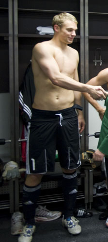 Manuel Neuer (born 27 March 1986 in Gelsenkirchen) is a German footballer and the current goalkeeper of Schalke 04. Neuer's hero and idol as a child was fellow German and former Schalke goalkeeper Jens Lehmann.
