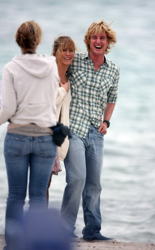 Jennifer Aniston is spotted on Thursday with co-star Owen Wilson on the set of their new film, Marley & Me, currently filming in Miami, Florida.