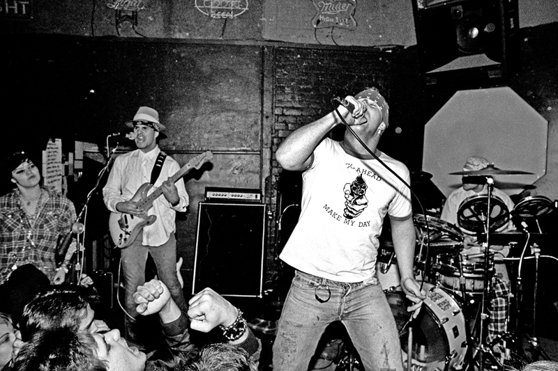 All this controversy helped the band gain label attention, and in 1983 Suicidal signed with the independent label Frontier Records and released their self-titled debut. It was described by critic Steve Huey as "Fast, furious, and funny... Mike Muir proves himself an articulate lyricist and commentator, delving into subjects like alienation, depression, and nonconformist politics with intelligence and humor.". It contained the song "Institutionalized", which featured a music video that became one of the first hardcore punk videos to receive substantial MTV airplay, and greatly expanded the band's fan base. The song, "Institutionalized", was also featured on the 1984 film Repo Man, as well as in an episode for the TV show Miami Vice (for which the group made a cameo appearance)and in the 2008 film Iron Man, where the song plays in the background as Tony Stark works on his car. Soon after the release of the debut album in 1983, Estes left the band and was replaced by Jon Nelson, former manager of Venice-based band Neighborhood Watch. Nelson played many shows with the band and also contributing to music for future songs like: "War inside my head", "Human Guinea Pig", and "The Boys are Back (Look Up)", “You got, I want”. But never recorded anything with them (except a live recording of the song "War Inside My head" which he wrote, but traded the credit to Muir for a "Flying 'V' guitar). He and Smith left in 1984 to form another band called The Brood, and were replaced by local metal musicians; guitarist Rocky George and drummer R. J. Herrera. This new line-up made their recording debut contributing to the Welcome to Venice compilation for Mike Muir's Suicidal Records. The band finally found a new label in Caroline Records in 1986.
