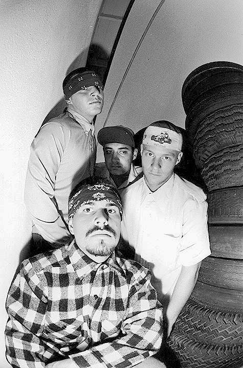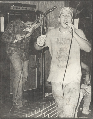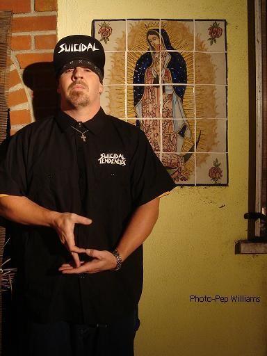 Suicidal Tendencies was formed in 1981 as a hardcore punk band in Venice, California. The original line-up of the band consisted of Mike Muir on vocals, Mike Ball on guitar, Carlos "Egie" Egert on drums, and Mike Dunnigan on bass. After the recording of its first demo, Carlos Egert left the band and was replaced by Dunnigan's brother Sean. Muir, at the time a student at Santa Monica College, originally only intended Suicidal Tendencies as a "party band" for fun, but as the band grew in notoriety he soon found the band at the center of his life. Suicidal Tendencies had a rough start that included being voted "Worst Band/Biggest Assholes" in Flipside in 1982. There were many rumors of the bands members as well as their friends and followers being involved with gangs (especially the Venice White Boyz), with Muirs trademark blue bandanna and violence at the bands performances as evidence. In their original line-up photo which can be seen inside their cassette tape self titled "Suicidal Tendencies," their drummer Amery Smith is wearing a flipped up hat and under the bill are the markings "V13" which are initials for an association to the Venice neighborhood (Not necessarily Venice 13, although there probably were a handful of V13 members who also were suicidals). An entire gang sprung up around the group, the Suicidal Cycos (also known as the Suicidals, Suis or Suicidal Boyz), with chapters in Venice, Long Beach, Santa Monica, Oceanside and even a chapter in San Antonio, Texas. The band name was also a source of controversy, although Muir has stated many times that he and the band do not condone suicide. Using the opposition to fuel creativity, they quickly gained a following and began performing at larger gigs. They recorded a demo in 1982 and were featured on the Slamulation compilation LP on Mystic Records. The song featured was "I Saw Your Mommy", which was later featured on their self-titled debut album. The Dunnigan brothers quit after these recordings, with Mike Dunnigan later joining Tony Alva's band The Skoundrelz to be back with Mike Ball on guitar and Bela Horvath on drums. Ball stayed in the band for 2 1/2 years before joining The Skoundrelz and was replaced by Dunnigan who toured and recorded the Demo before the first record came out. Grant Estes replaced him.