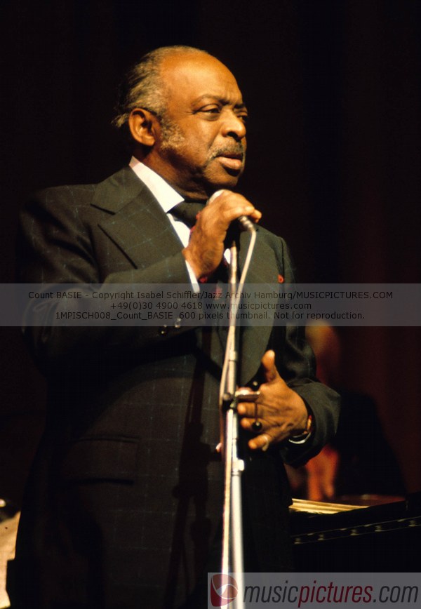 William "Count" Basie (August 21, 1904 – April 26, 1984) was an American jazz pianist, organist, bandleader, and composer. Basie led his jazz orchestra almost continuously for nearly 50 years. Many notable musicians came to prominence under his direction, including tenor saxophonists Lester Young and Herschel Evans, trumpeters Buck Clayton and Harry "Sweets" Edison and singers Jimmy Rushing and Joe Williams. Basie's theme songs were "One O'Clock Jump" and "April In Paris".