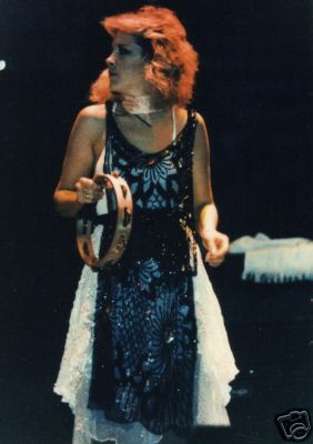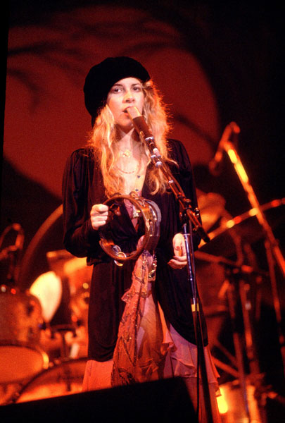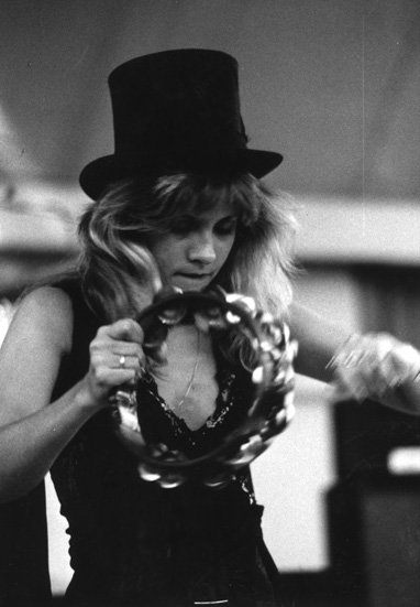 Upon being asked in a question forum on her official website about playing the tambourine, Nicks stated that she began playing the tambourine upon joining Fleetwood Mac in 1975, feeling the need to do something onstage during songs that featured Lindsey or Christine. Like her microphone, her tambourine usually features scarves and/or streamers. Nicks' trademark tambourine since the early 1980s is in the shape of a black half-moon.