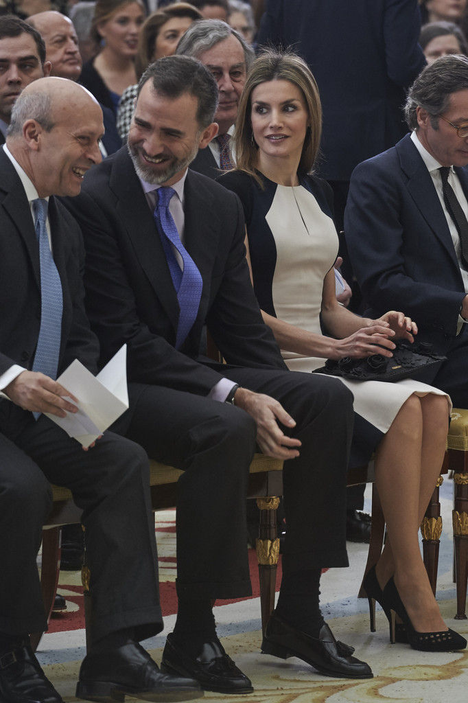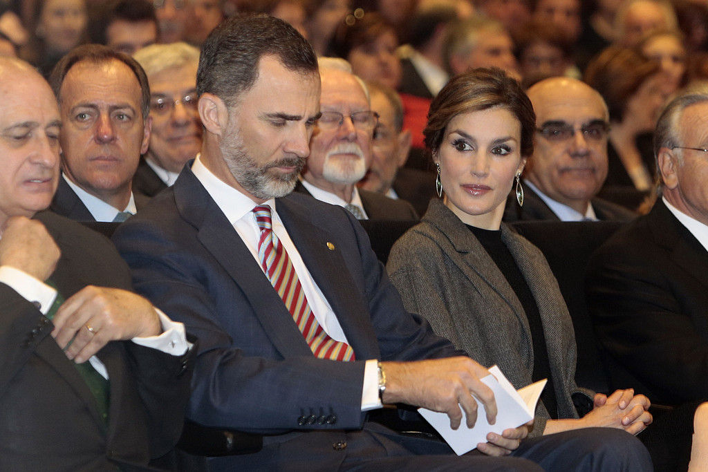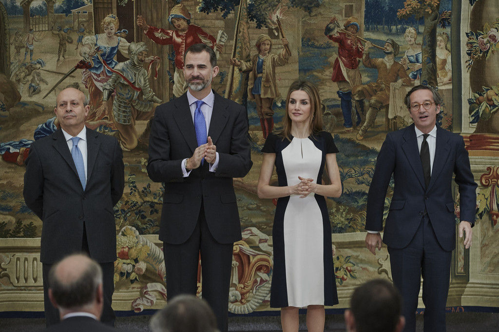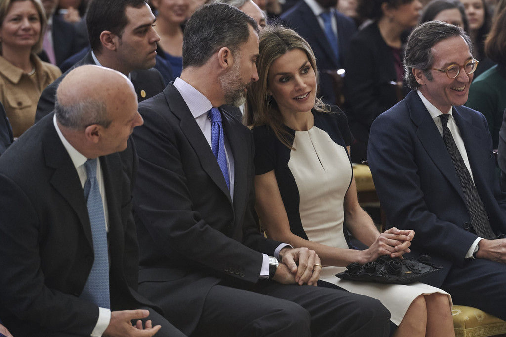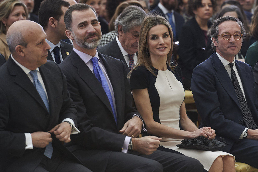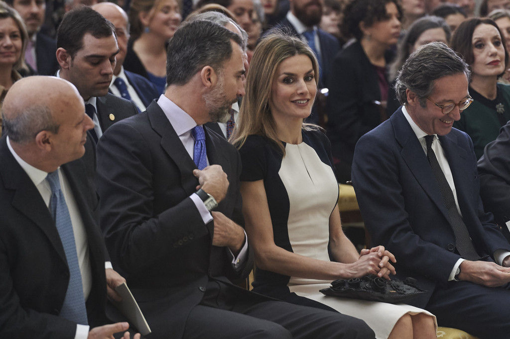 King Felipe VI of Spain and Queen Letizia of Spain attend the Investigation National Awards 2014 at the Royal Palace on January 15, 2015 in Madrid, Spain.