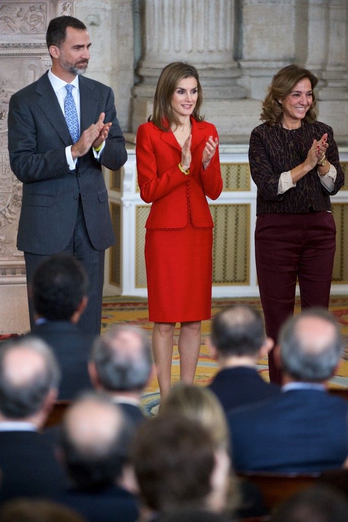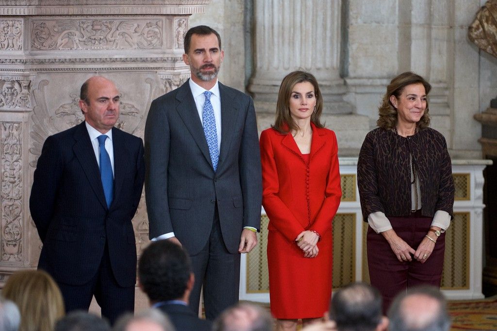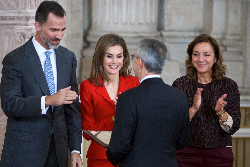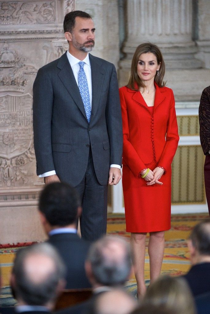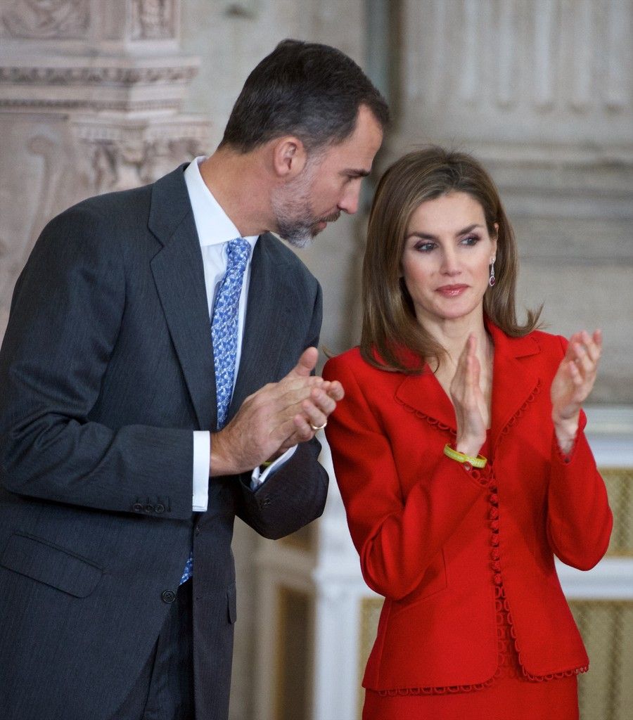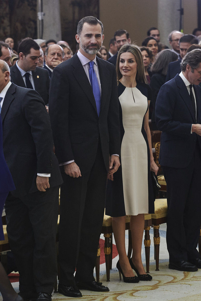 King Felipe VI of Spain and Queen Letizia of Spain attend the Investigation National Awards 2014 at the Royal Palace on January 15, 2015 in Madrid, Spain.
