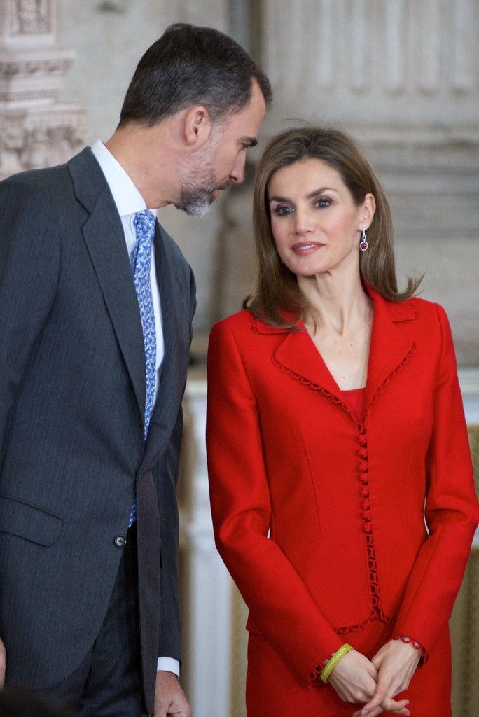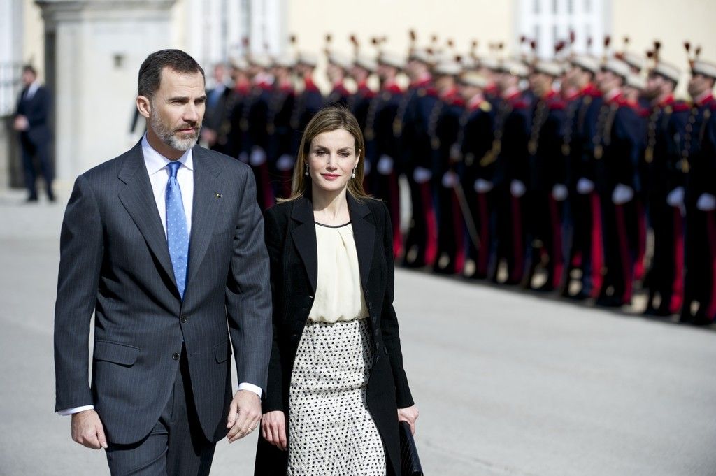 King Felipe VI of Spain and Queen Letizia of Spain attend the Pascua Militar ceremony at the Royal Palace on January 6, 2015 in Madrid, Spain.