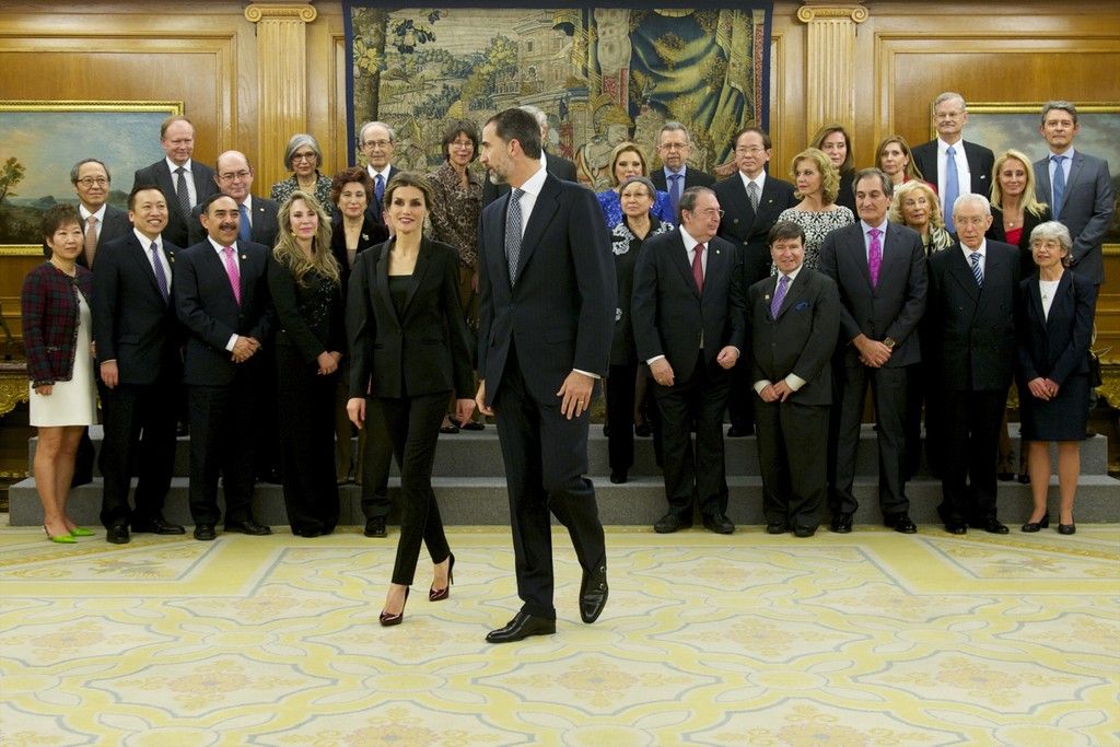 Queen Letizia of Spain and King Felipe VI of Spain receive an audience a representation of the attendees the 'I International Symposium on Cancers of the Skin' at Zarzuela Palace on January 29, 2015 in Madrid, Spain.