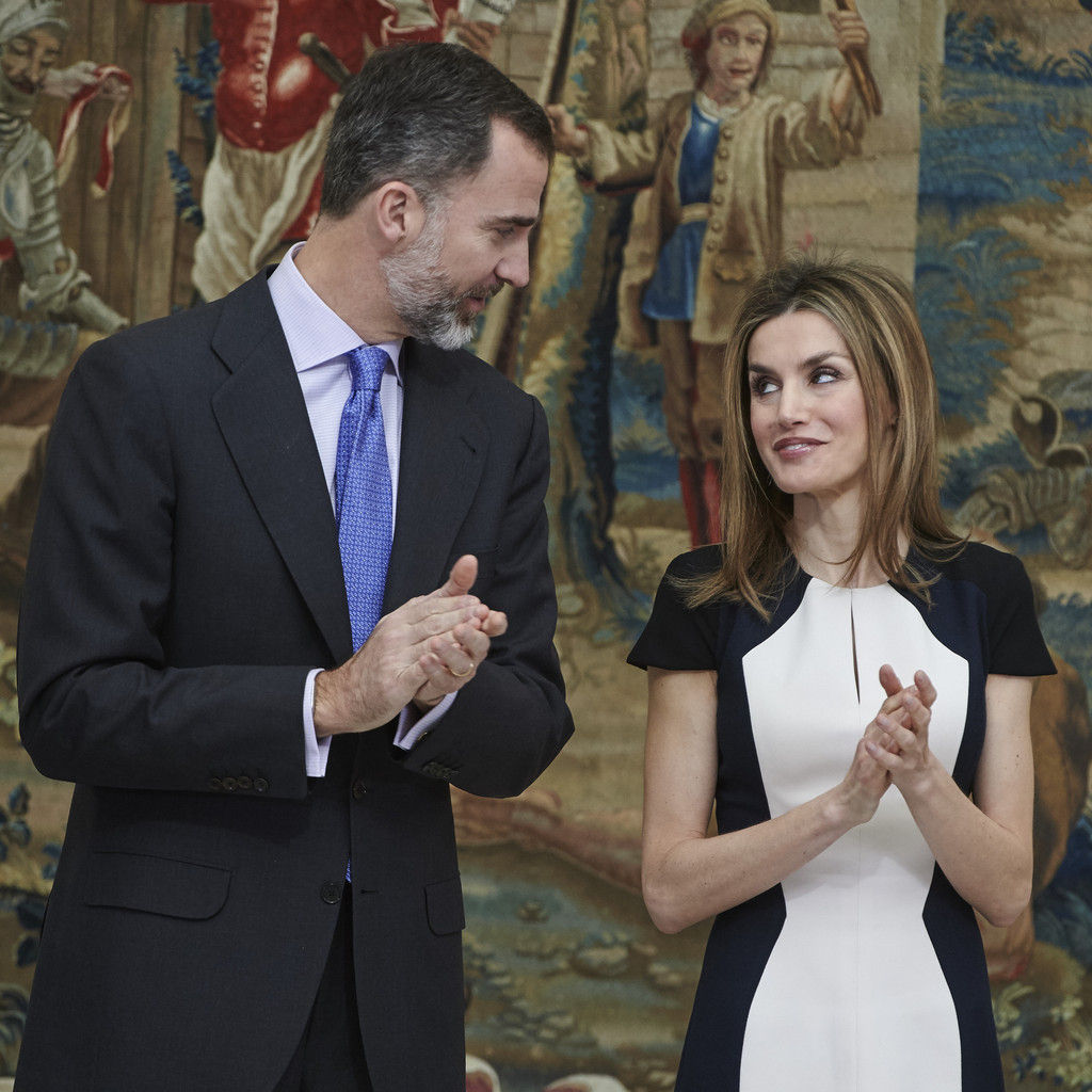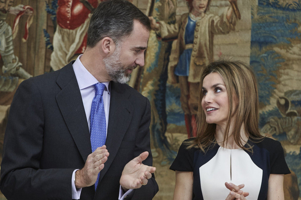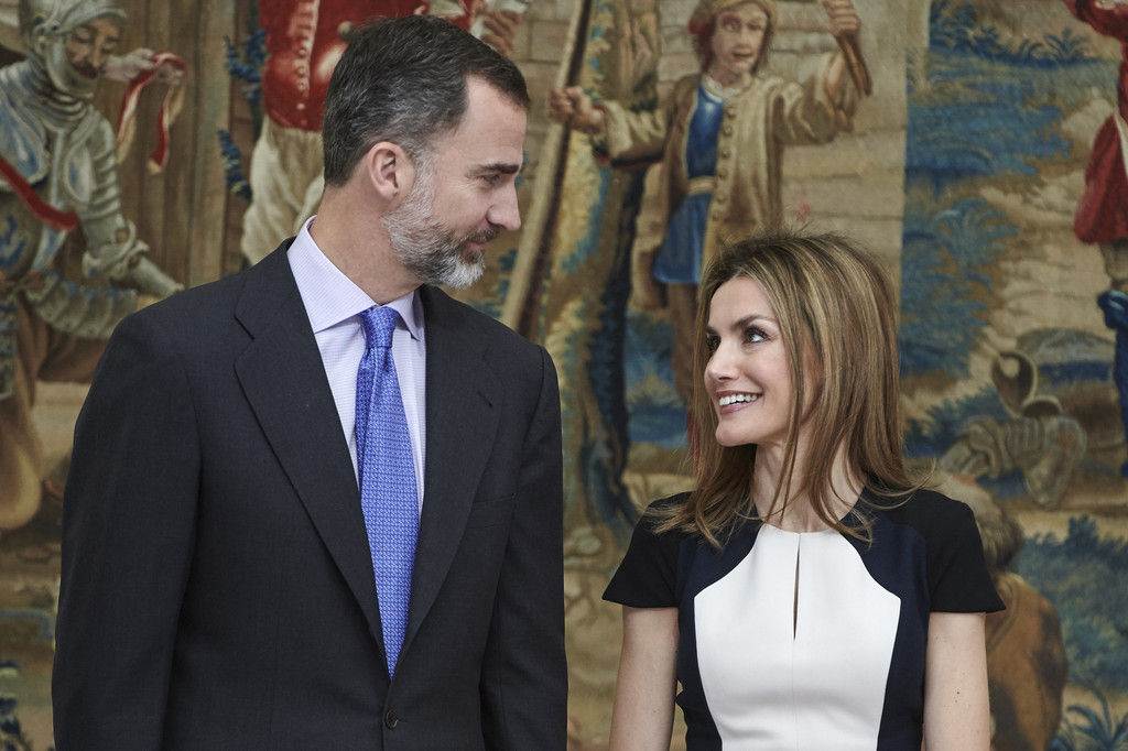 King Felipe VI of Spain and Queen Letizia of Spain attend several audiences at the Zarzuela Palace on May 18, 2015 in Madrid, Spain.