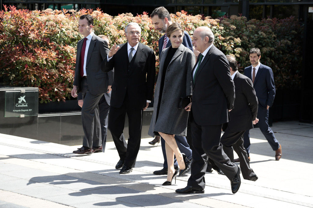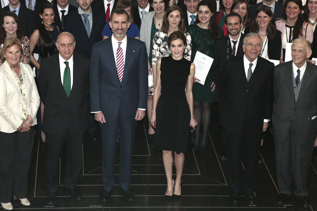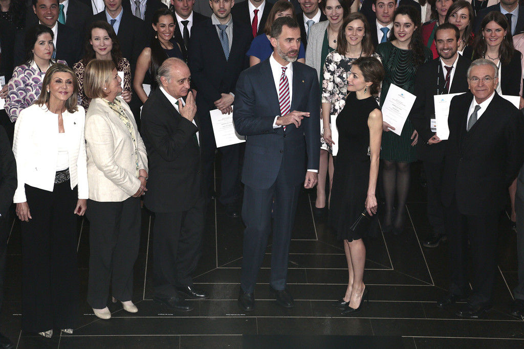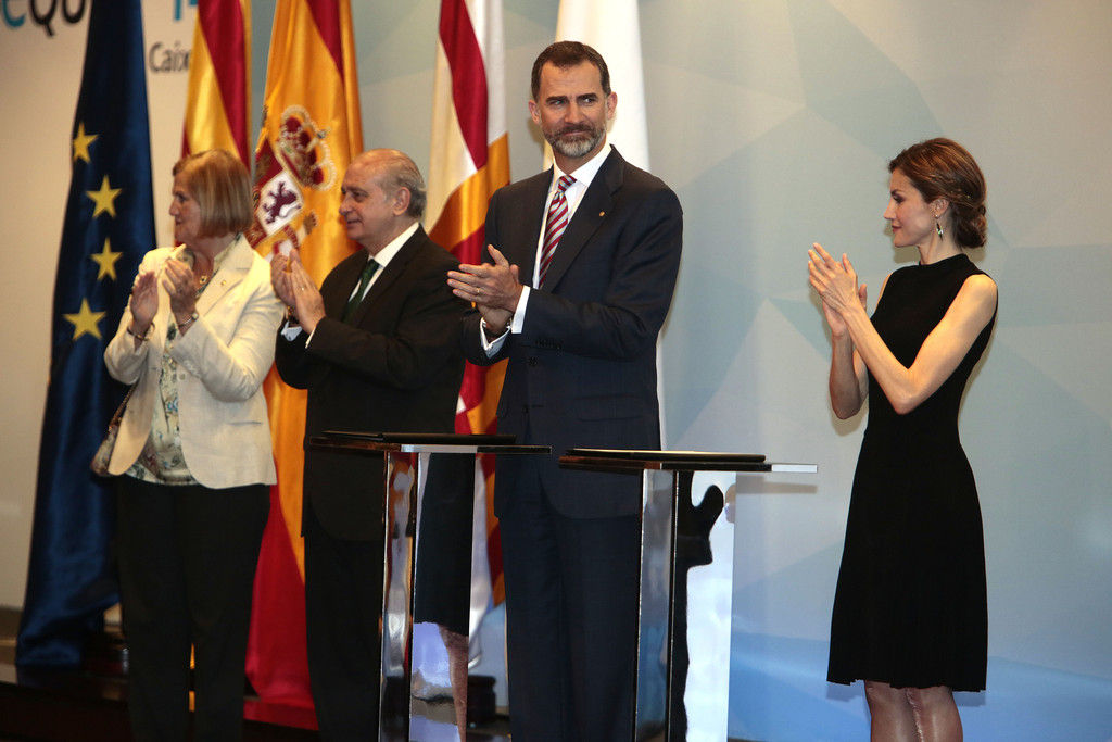 King Felipe VI of Spain and Queen Letizia of Spain preside over the 33rd edition of the Caixa scholarship award ceremony in Barcelona on April 10, 2015.