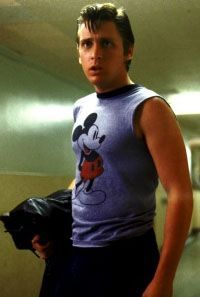 Estevez received great attention during the 1980s for being a member of the Brat Pack and was credited as the leader of the group of young actors. Estevez and Rob Lowe established the Brat Pack when cast as supporting "Greasers" in the first Brat Pack movie, The Outsiders based on the novel. Lowe was cast as C. Thomas Howell's older brother Sodapop and Estevez as the drunken Two-Bit Matthews. During production, he also approached his character as a laid-back guy and thought up Two-Bit's interest in Mickey Mouse, shown by his uniform of Mickey Mouse T-shirts and watching of cartoons.