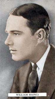 Haines's career began slowly, as he appeared in extra and bit parts, mostly uncredited. His first significant role was in Three Wise Fools (1923). He attracted positive critical attention and the studio began building him up as a new star. However, he continued to play small, unimportant parts at Goldwyn. It was not until his home studio loaned him to Fox in 1923 for The Desert Outlaw that he got the opportunity to play a significant role. In 1924, MGM lent Haines to Columbia Pictures for a five-picture deal. The first of these, The Midnight Express (1924), received excellent reviews and Columbia offered to buy his contract. The offer was refused and Haines continued in bit roles for Goldwyn. Haines scored his first big personal success with Brown of Harvard (1926) opposite Jack Pickford and Mary Brian. It was in Brown that he crystallized his screen image, a young arrogant man who is humbled by the last reel. It was a formula to which he was repeatedly returned for the next several years.