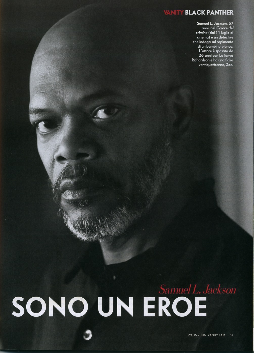 Jackson has since appeared in over 100 films including Die Hard with a Vengeance, The 51st State, Jackie Brown, Unbreakable, The Incredibles, Black Snake Moan, Snakes on a Plane, as well as the Star Wars prequel trilogy and small roles in Quentin Tarantino's Kill Bill Vol. 2 and Inglourious Basterds. He played Nick Fury in Iron Man and Iron Man 2, the first two of a nine film commitment as the character for the Marvel Cinematic Universe franchise. Jackson's many roles have made him one of the highest grossing actors at the box office. Jackson has won multiple awards throughout his career and has been portrayed in various forms of media including films, television series, and songs. In 1980, Jackson married LaTanya Richardson, with whom he has one daughter, Zoe.