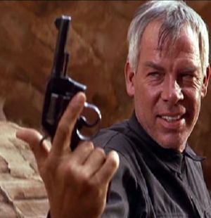 Lee Marvin (February 19, 1924 – August 29, 1987) was an American film actor. Known for his gravelly voice, white hair and 6' 2" stature, Marvin at first did supporting roles, mostly villains, soldiers and other hardboiled characters, but after winning an Academy Award for Best Actor for his dual roles in Cat Ballou (1965), he landed more heroic and sympathetic leading roles.