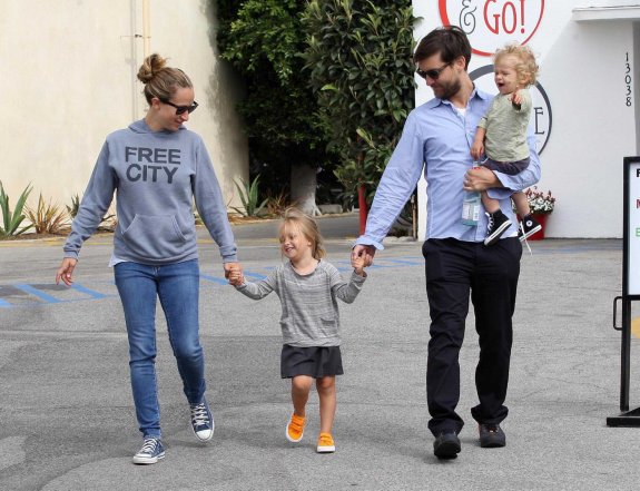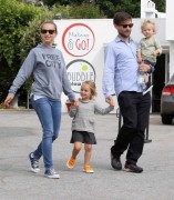 Out and about with his family. Kids Ruby and Otis and wife Jennifer Meyer AUGUST 9 2010