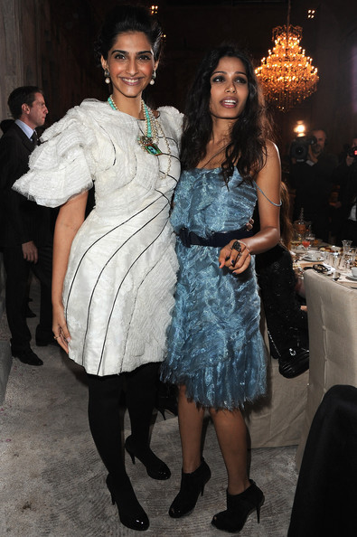 Sonam Kapoor and Freida Pinto attend the Chanel Paris-Bombay Show at Grand Palais on December 6, 2011 in Paris, France. (December 5, 2011)