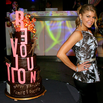 In March, Fergie (in Dolce & Gabbana) hit the Beatles Revolution Lounge at the Mirage Hotel & Casino to blow out the candles on her cake, take in Love—the Cirque du Soleil show inspired by the music of the Beatles—and party into the wee hours at Jet nightclub. The pretty Pea shared her bash with Quentin Tarantino, who was in Sin City to mark his 45th birthday.