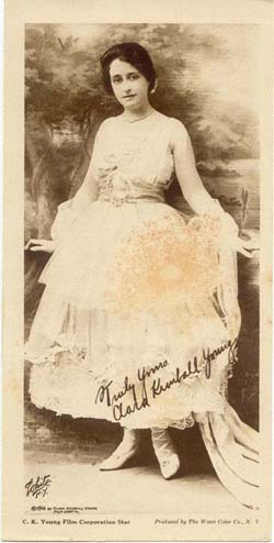 Early in her career she met and married a fellow stock company actor named James Young. After sending a photograph to the Vitagraph motion picture studios Clara Kimball Young, as she was then known, and her husband were both offered yearly contracts in 1912.