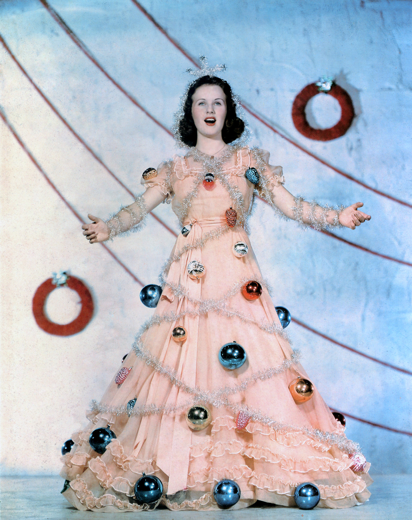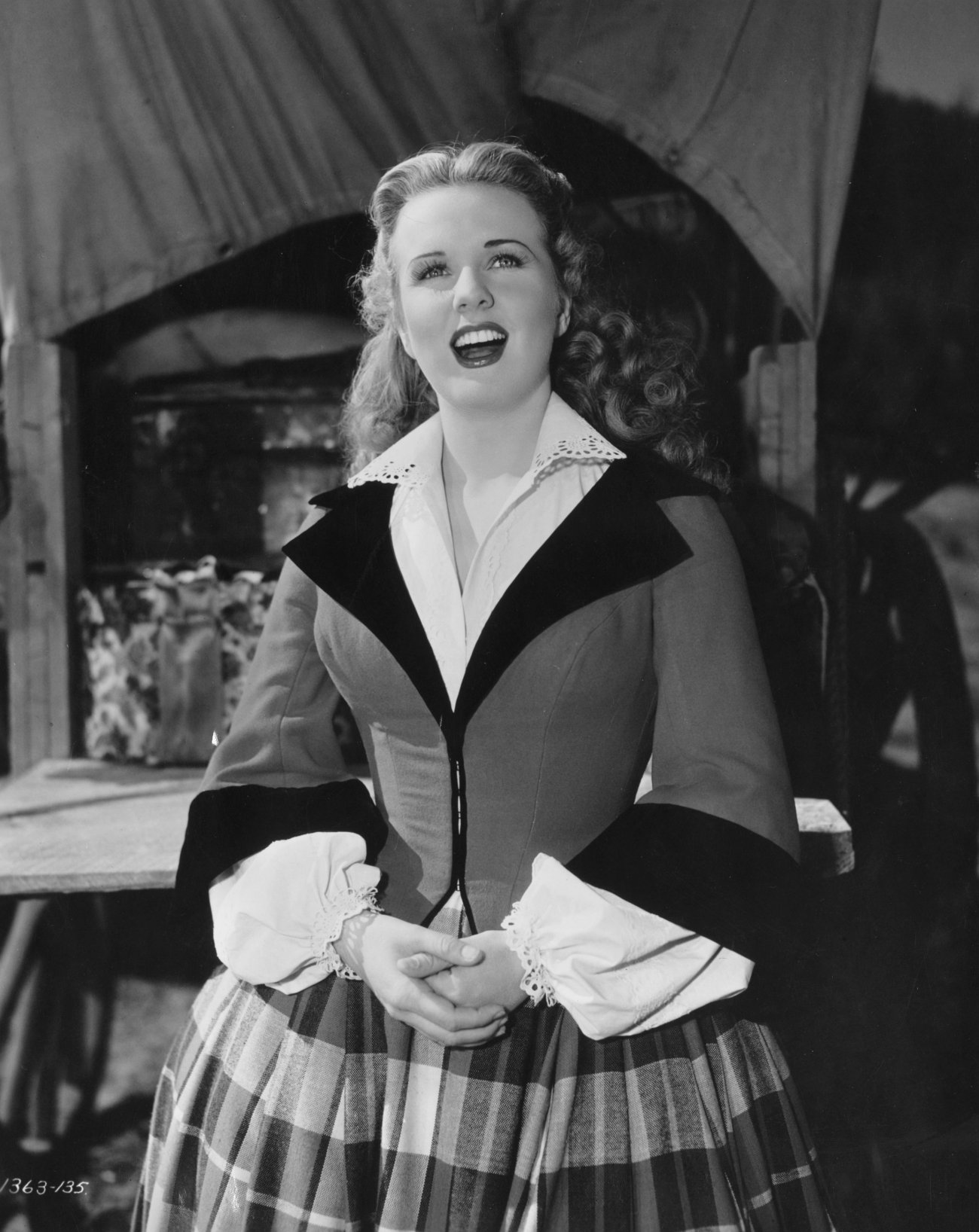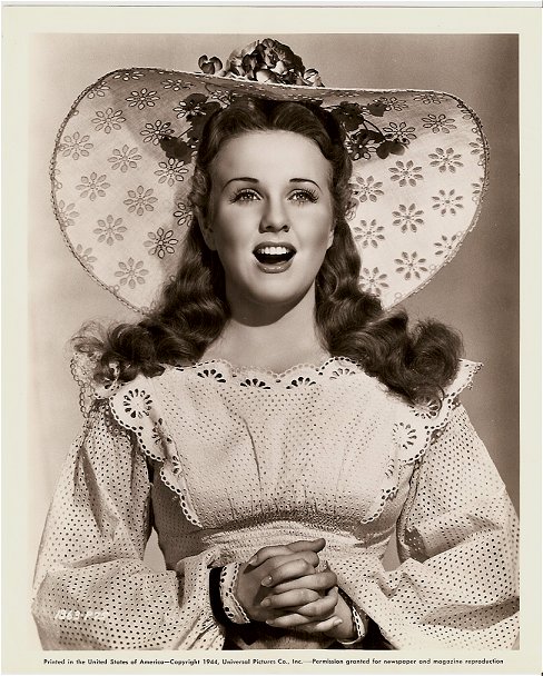 She made her only Technicolor film in 1944, Can't Help Singing, featuring some of the last melodies written by Jerome Kern plus lyrics by E. Y. Harburg. A musical comedy in a Western setting, this production was filmed mostly on location in southern Utah. Her co-star was Robert Paige, who is better known for his work in television dramas in the 1950s.