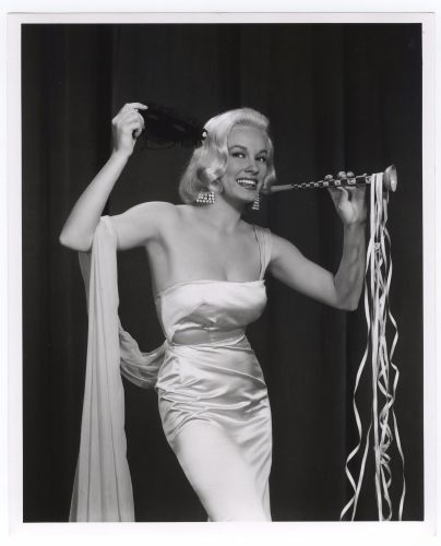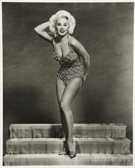 She posed twice for Playboy in 1963 to promote her movie 3 Nuts in Search of a Bolt (1964), though she was never a Playmate. By this point in her career, her voluptuous figure measured 38DD-26-36 (self-described in 1997). She said about her curves, "I don't even want to say double-D, because they're even bigger than that."
