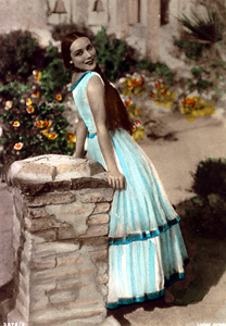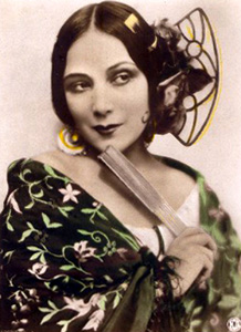 In 1926 the artist Theodore Lukits painted her portrait. Titled A Souvenir of Seville, it depicted the actress in the dress worn for her presentation to the Spanish Court. Also featured was her pet monkey. The large painting was displayed in the Carthay Circle Theatre for the premier of The Loves of Carmen (1927). It was reproduced in magazine and newspaper articles in the United States and Mexico.