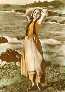 With the advent of talkies, she was relegated to exotic and unimportant roles. The Hollywood executives sought "do not talk too much at her movies", because of her Latin accent. She scored successes with Bird of Paradise (1932, directed by King Vidor. The film was produced by David O. Selznick that request the script to King Vidor and say: "I want Del Rio in a love story in the South Seas. I don't care the script, but in the end, Del Rio should be thrown into a volcano". The film scandalized audiences when she took a naked swim with Joel McCrea. This film was made before the Hays Code was enacted so nudity could be shown. Next she filmed Flying Down to Rio (the film that launched the careers of Fred Astaire and Ginger Rogers) (1933); Madame Du Barry (1934) and Wonder Bar (1934).