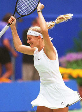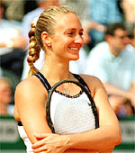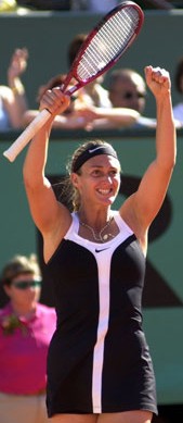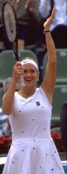 Pierce won her second Grand Slam singles title and her first Grand Slam doubles title at the 2000 French Open. In the singles final, she defeated Martínez to become the first French woman to claim the title since Françoise Durr in 1967. And she partnered Hingis to win the women's doubles crown. (The pair also were the runners-up at the Australian Open earlier that year.)