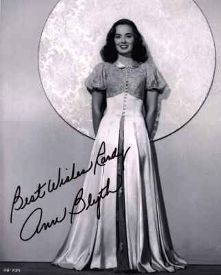 On loan to Warner Brothers, Blyth was cast against type as Veda Pierce, the scheming, ungrateful daughter of Joan Crawford in the 1945 film Mildred Pierce. Her dramatic portrayal won her outstanding reviews and she received a nomination for an Academy Award for Best Supporting Actress. (Crawford won the Best Actress award for that film.)