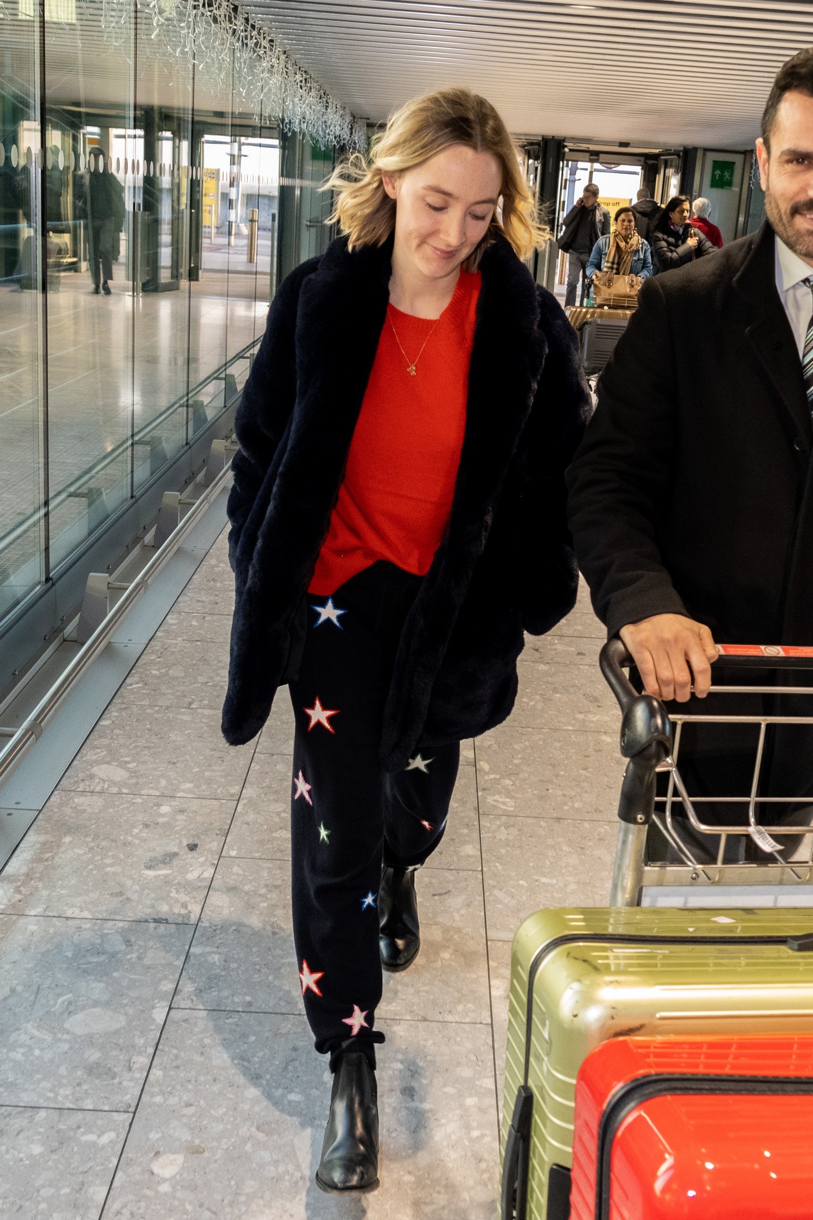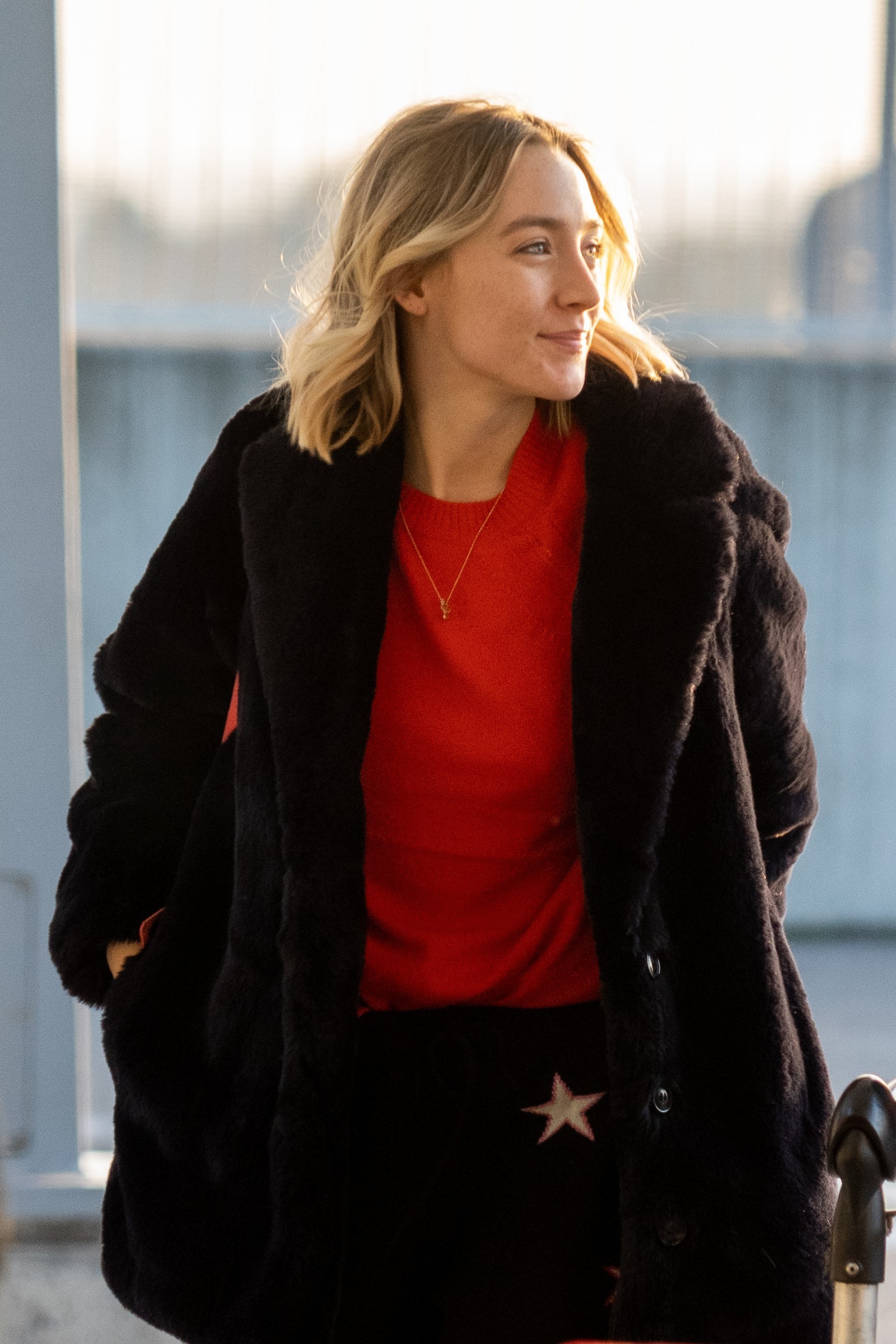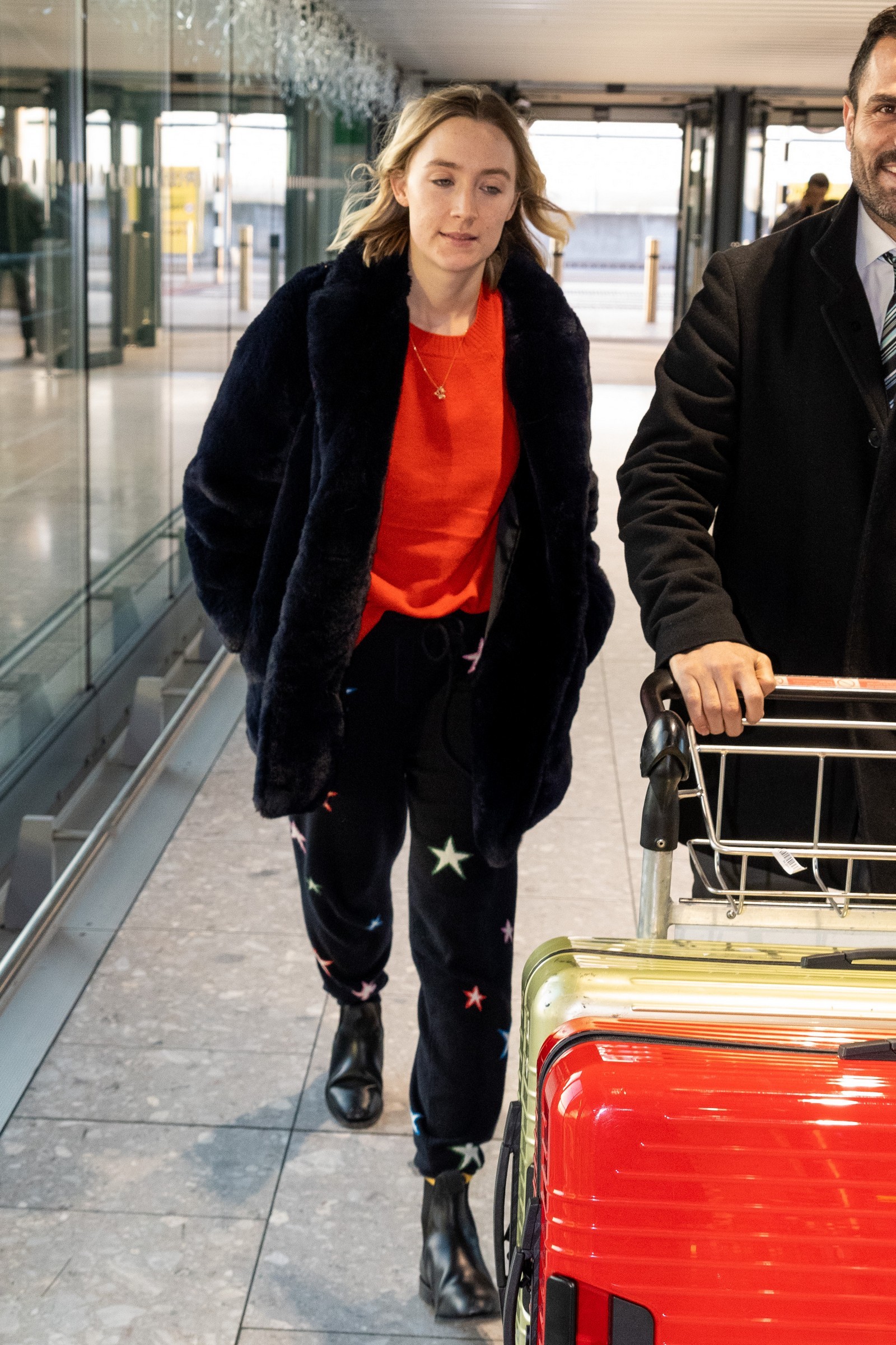 Saoirse Ronan at LAX for a departing flight with her mother - Mar 6, 2018