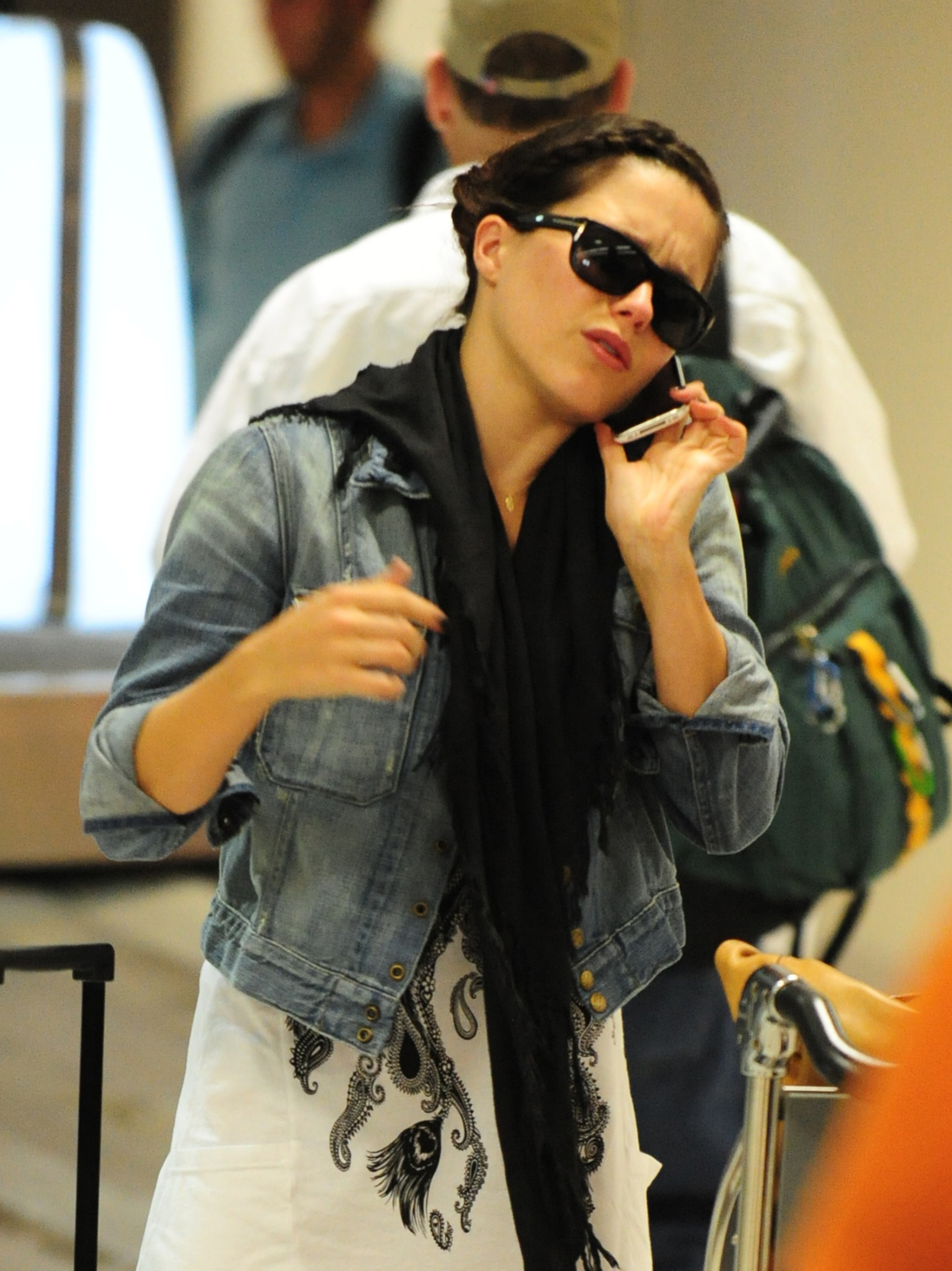 Sophia was seen lugging around a black Titan rolling suitcase, a Max Azria shopping bag and a gray quilted Chanel handbag.