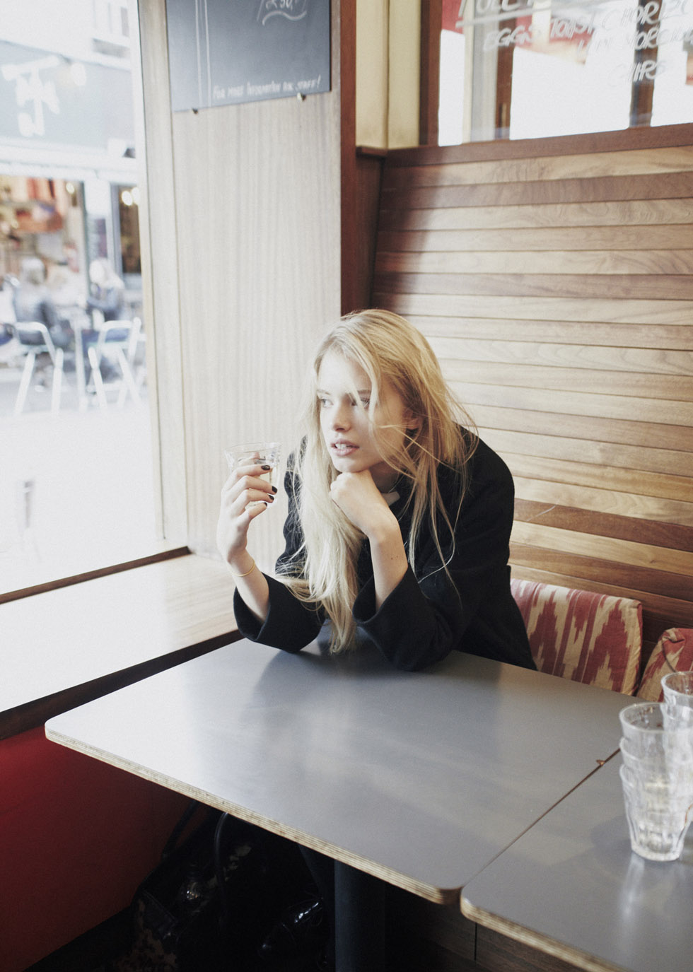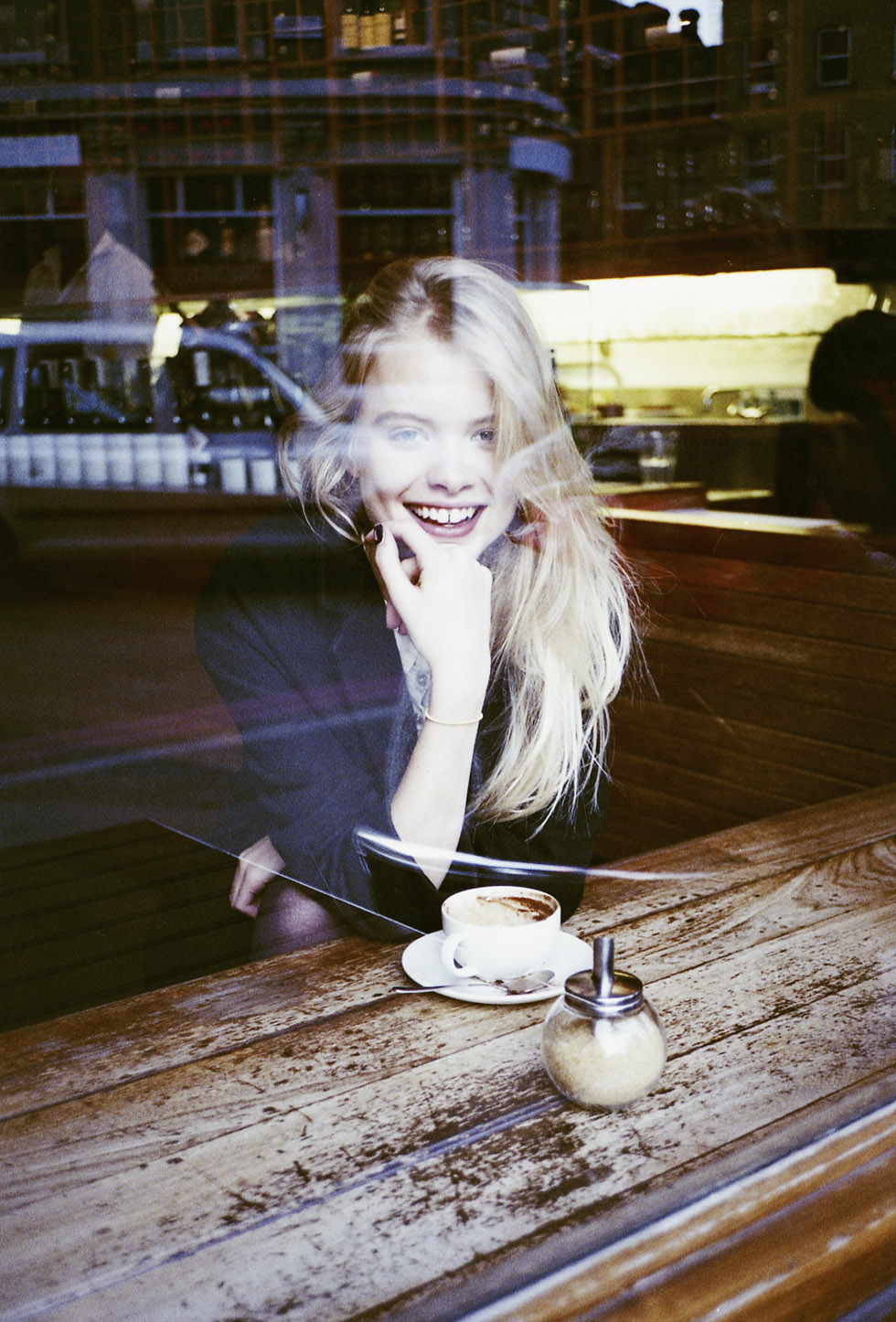 Laura Jiménez makes her debut on C-Heads starring gorgeous Charlie Newman at Models-1 London wearing own clothes, one white male t-shirt and blue vintage jacket. A beautiful mix of in- and outdoor images shot on film – all natural, sweet and unintended. ”I didn’t plan anything for Charlie’s shooting. I wanted to have a coffee with her and shoot her in the meantime, something simple and relaxed. We took some pictures in the studio of a friend’s house in Borough and then we went around the corner for a chat, ordered hot chocolate for her and white wine for me. It was a cold afternoon in London. Charlie is magic.” True – We can´t take our eyes off!