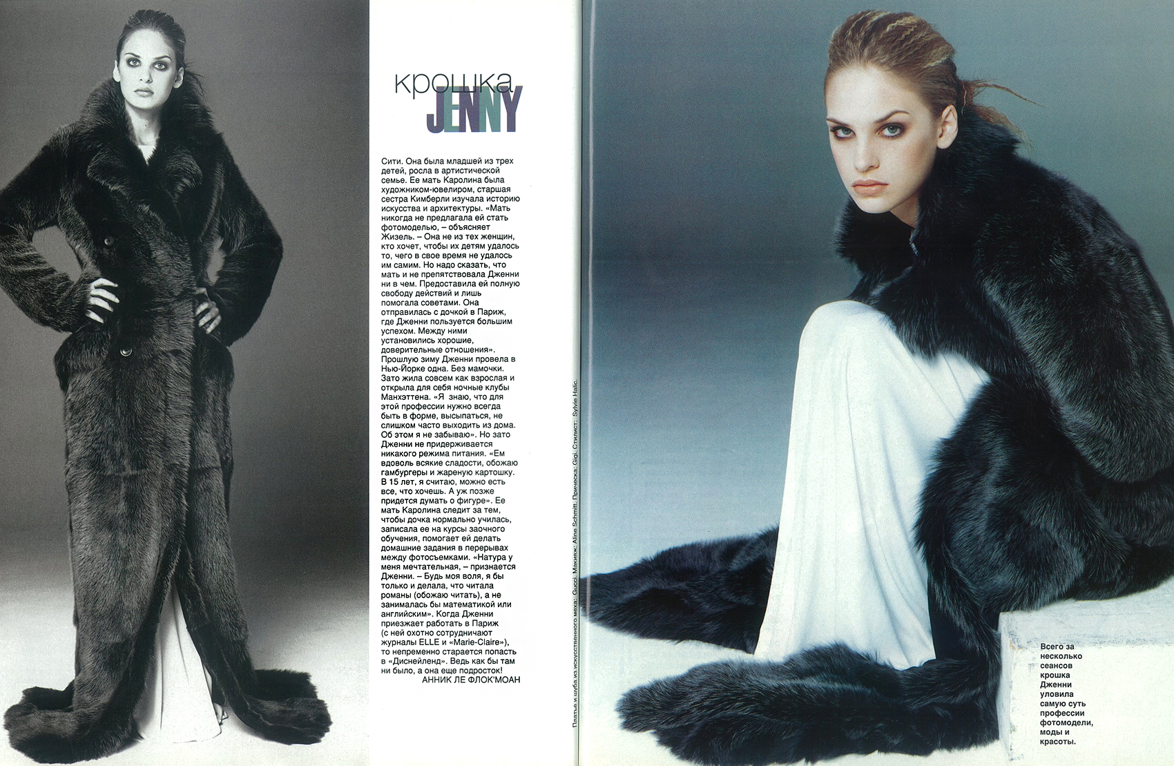 I read in a magazine TopModel (Russia) Oct/Nov.1996 that she was 15 years old dreamed of becoming a fashion-model and Jenny liked Linda Evangelista.